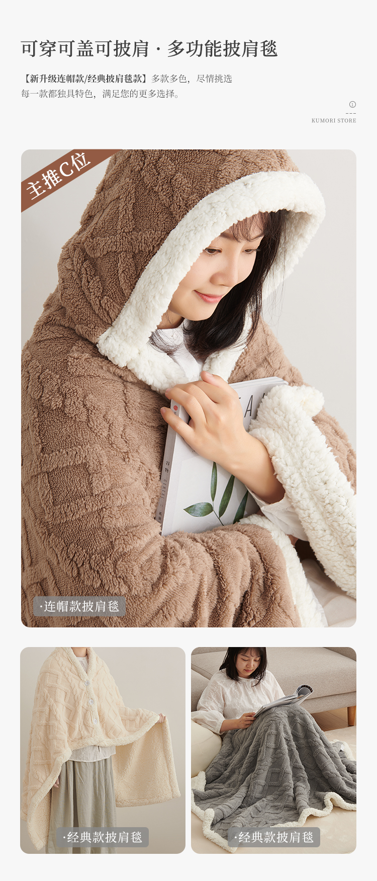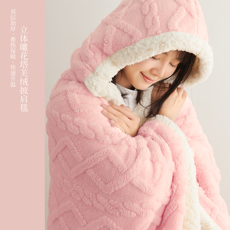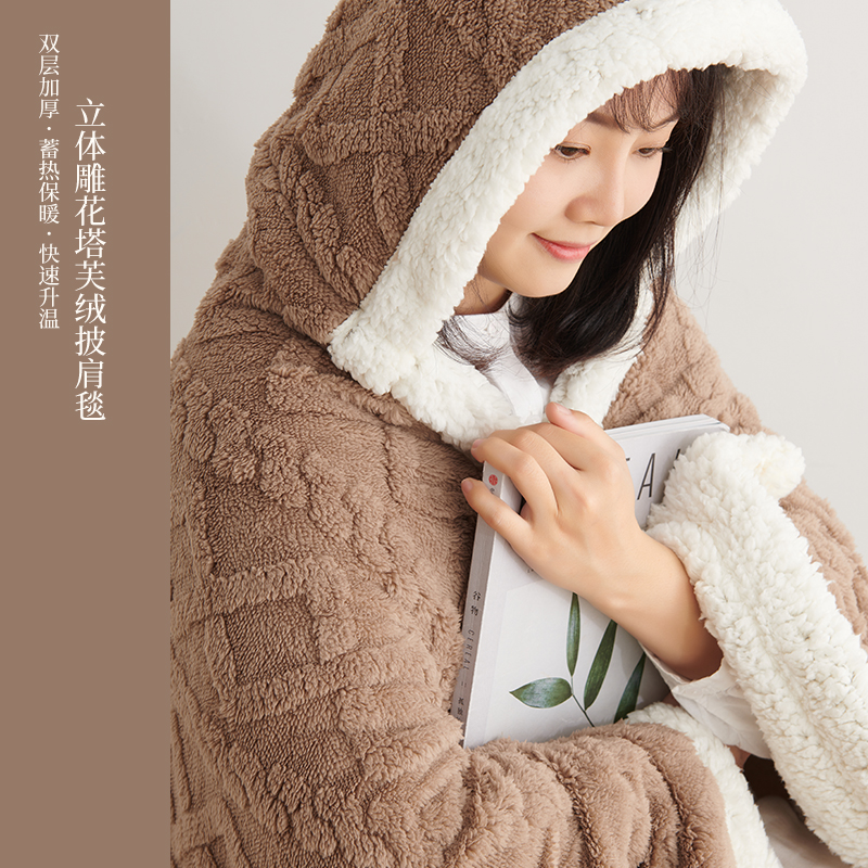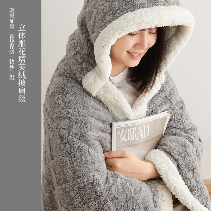 Tiantai Hualian 겨울 학생 담요 소파 에어컨 담요 점심 식사 사무실 두꺼운 담요 후드 판초