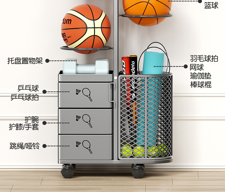 Tiantai Hualian 농구 저장 랙 바닥 저장 랙 가정용 거실 장난감 저장 공 스포츠 장비 요가 매트스토어 가기