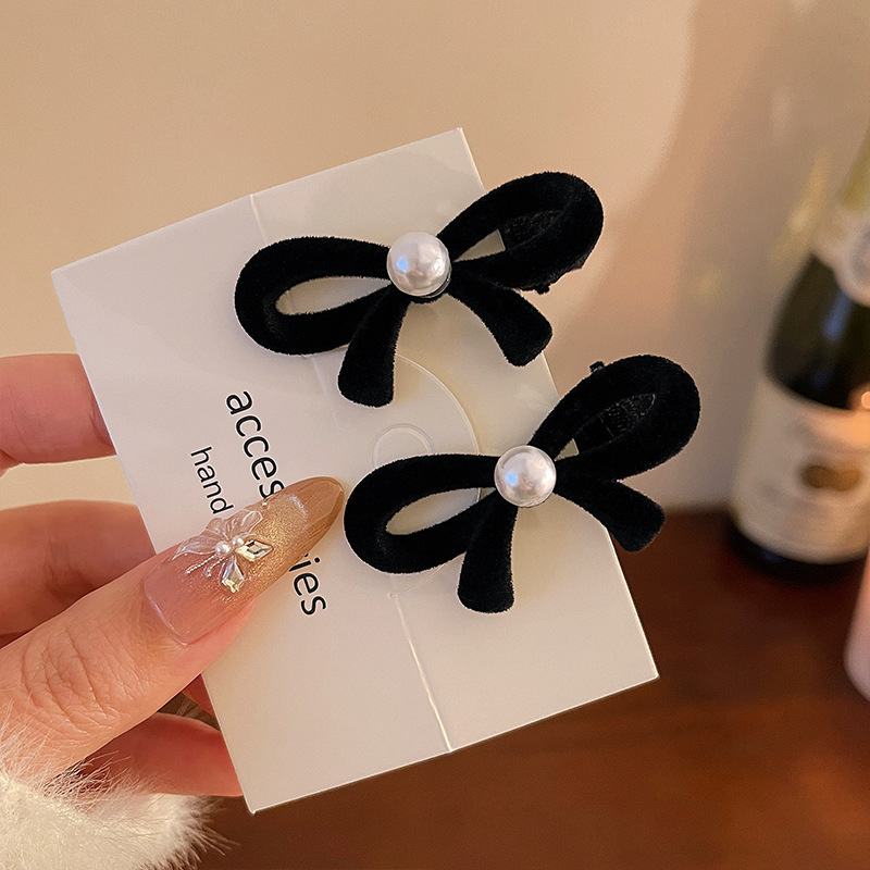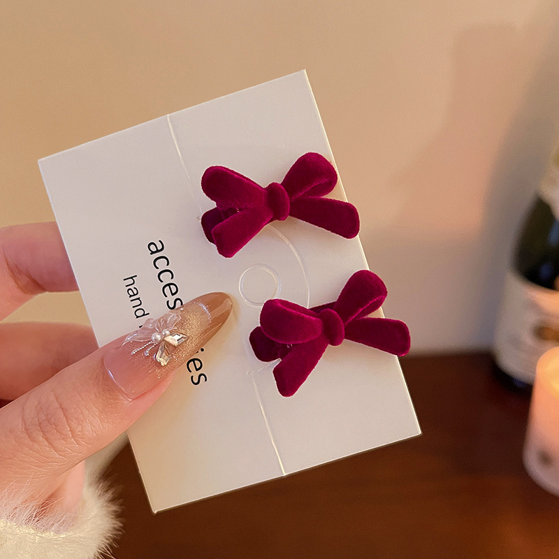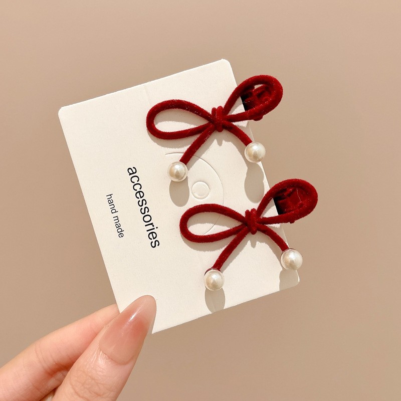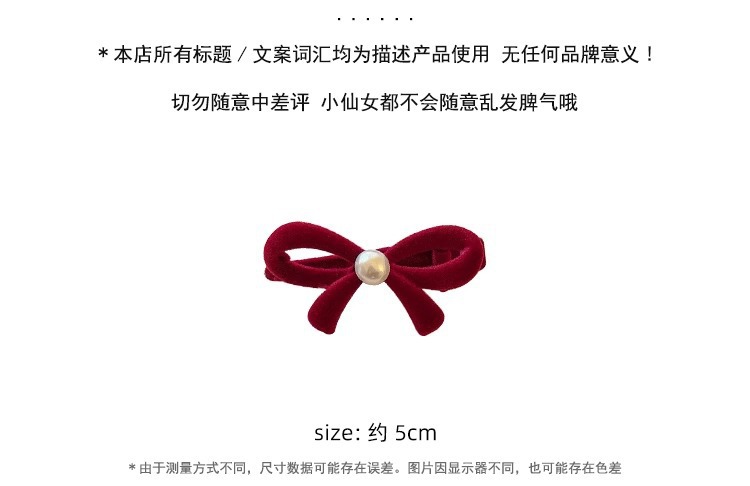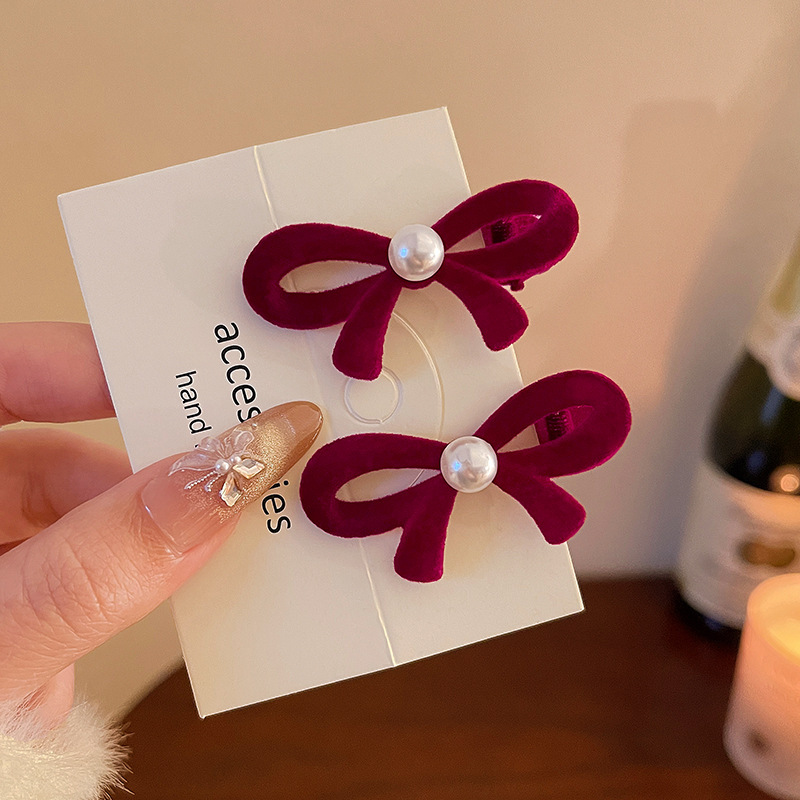 새해 레드 벨벳 진주 활 머리 클립 여성 하이 엔드 사이드 포니 테일 헤어 클립 크리스마스 헤드웨어