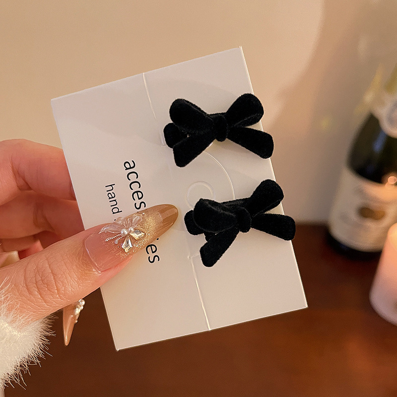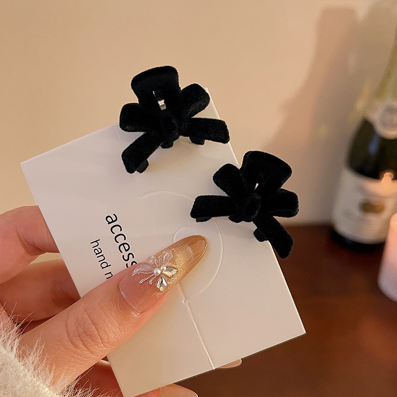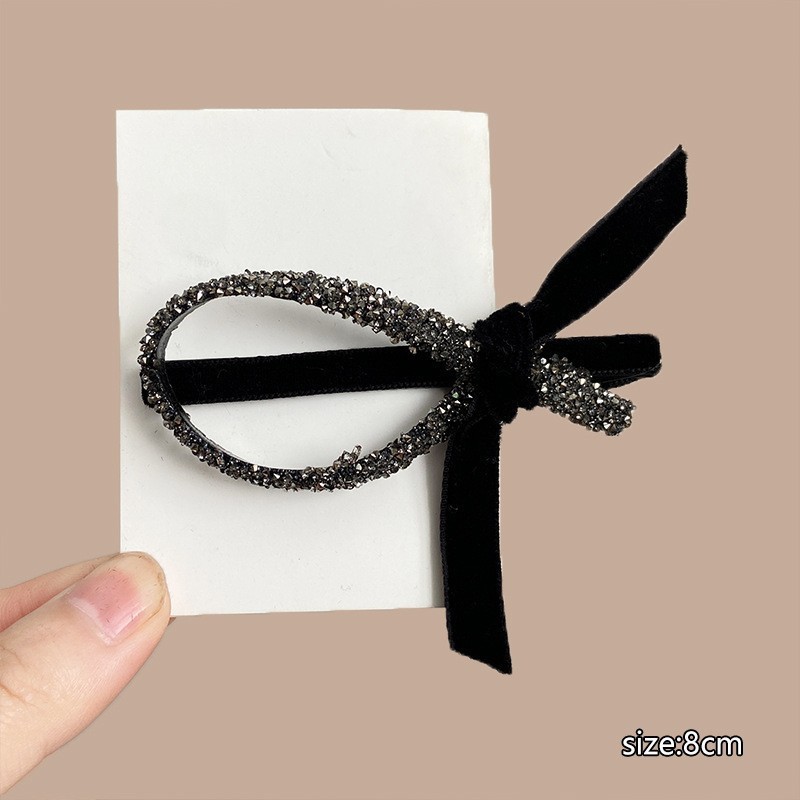 • 블랙 리본 큐빅 나비 매듭 헤어 클립