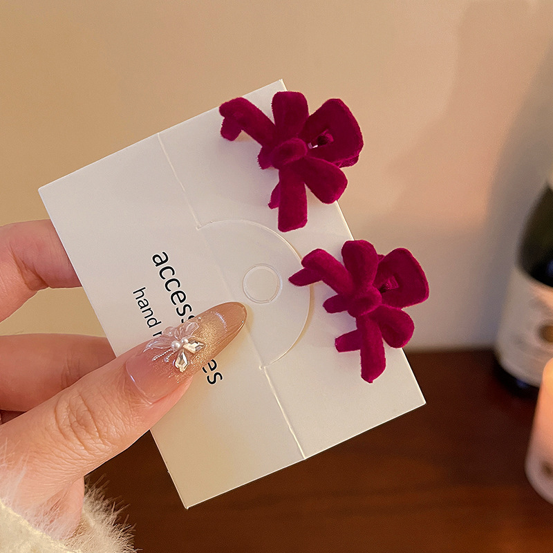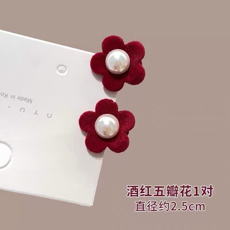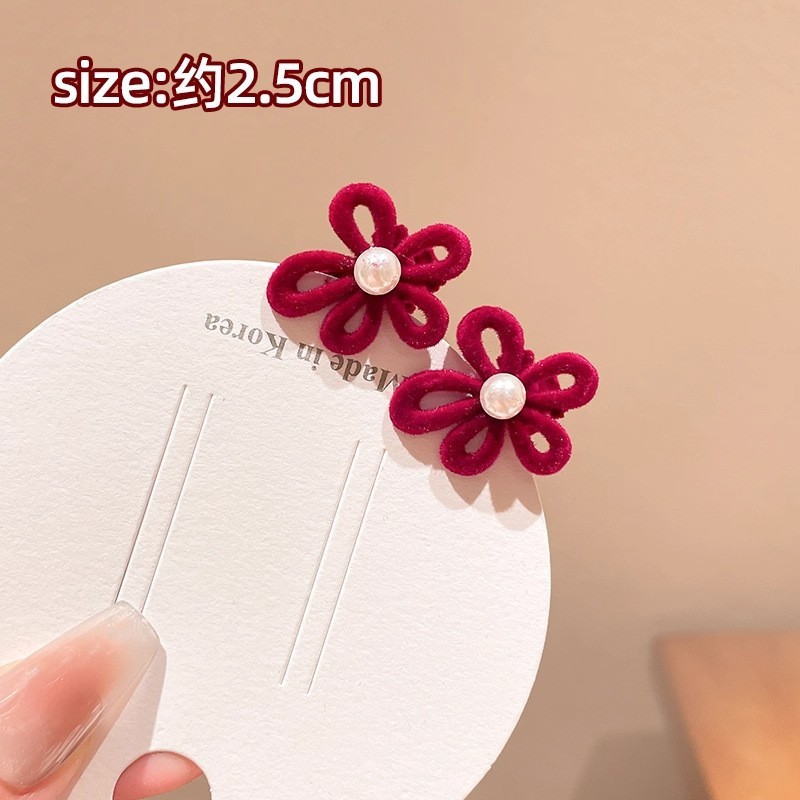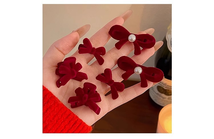 새해 레드 벨벳 진주 활 머리 클립 여성 하이 엔드 사이드 포니 테일 헤어 클립 크리스마스 헤드웨어스토어 가기