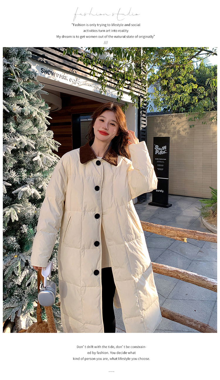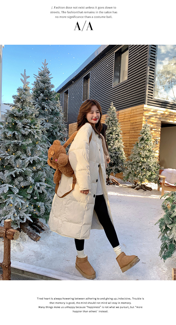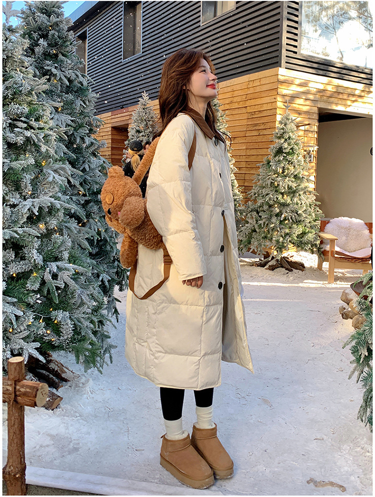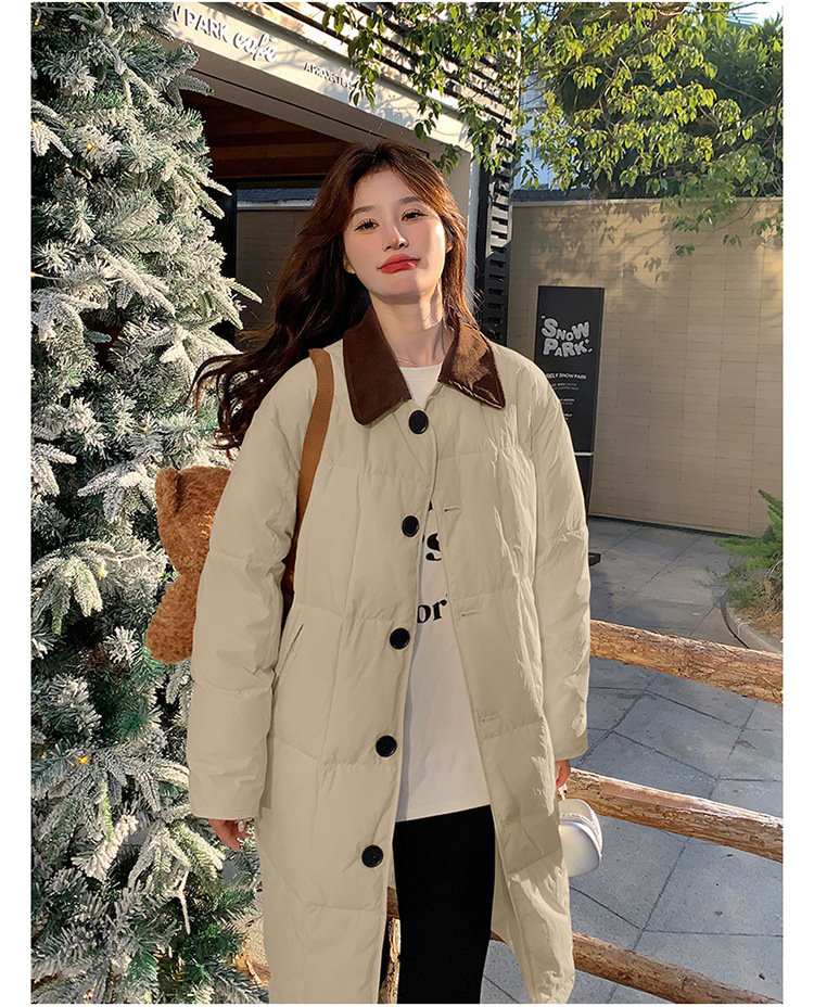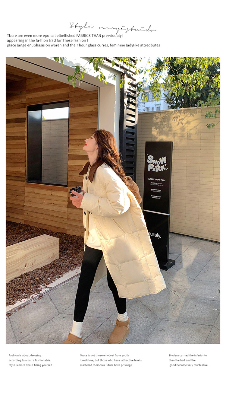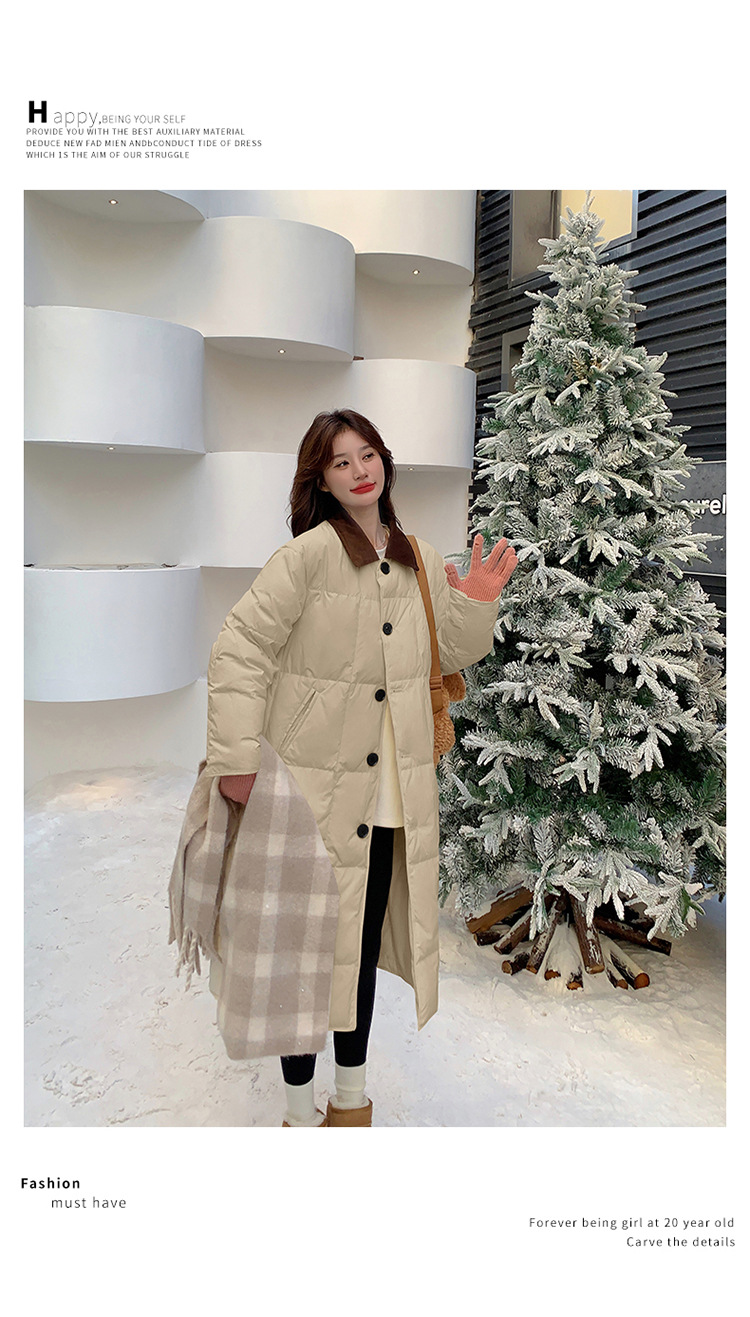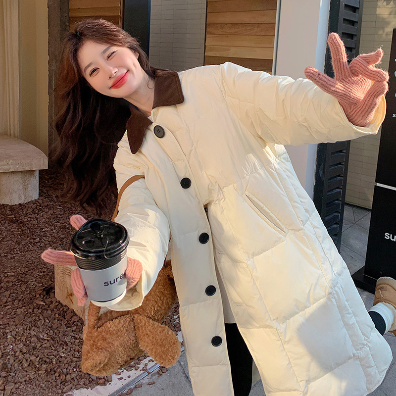 아이보리 경량 다운 재킷 여자 겨울 새로운 중간 길이 한국 스타일 착용 연령 감소 두꺼운 화이트 덕 다운 재킷 트렌디스토어 가기