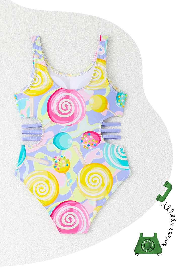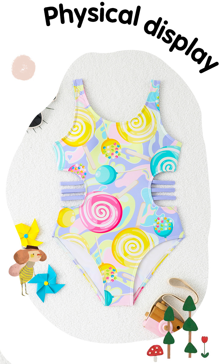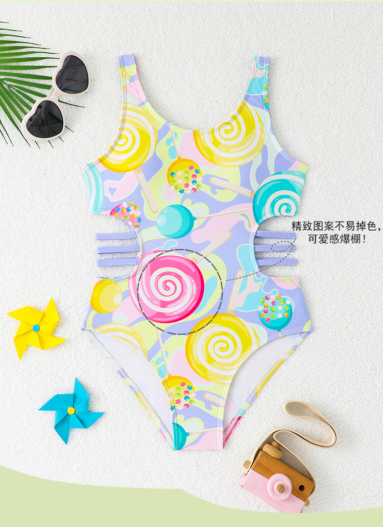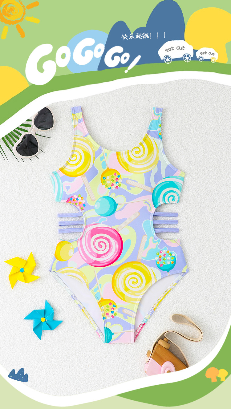 2025 새로운 어린이 원피스 수영복 할로우 귀여운 원피스 여아 작고 중대하고 큰 어린이 학생 수영복 온천