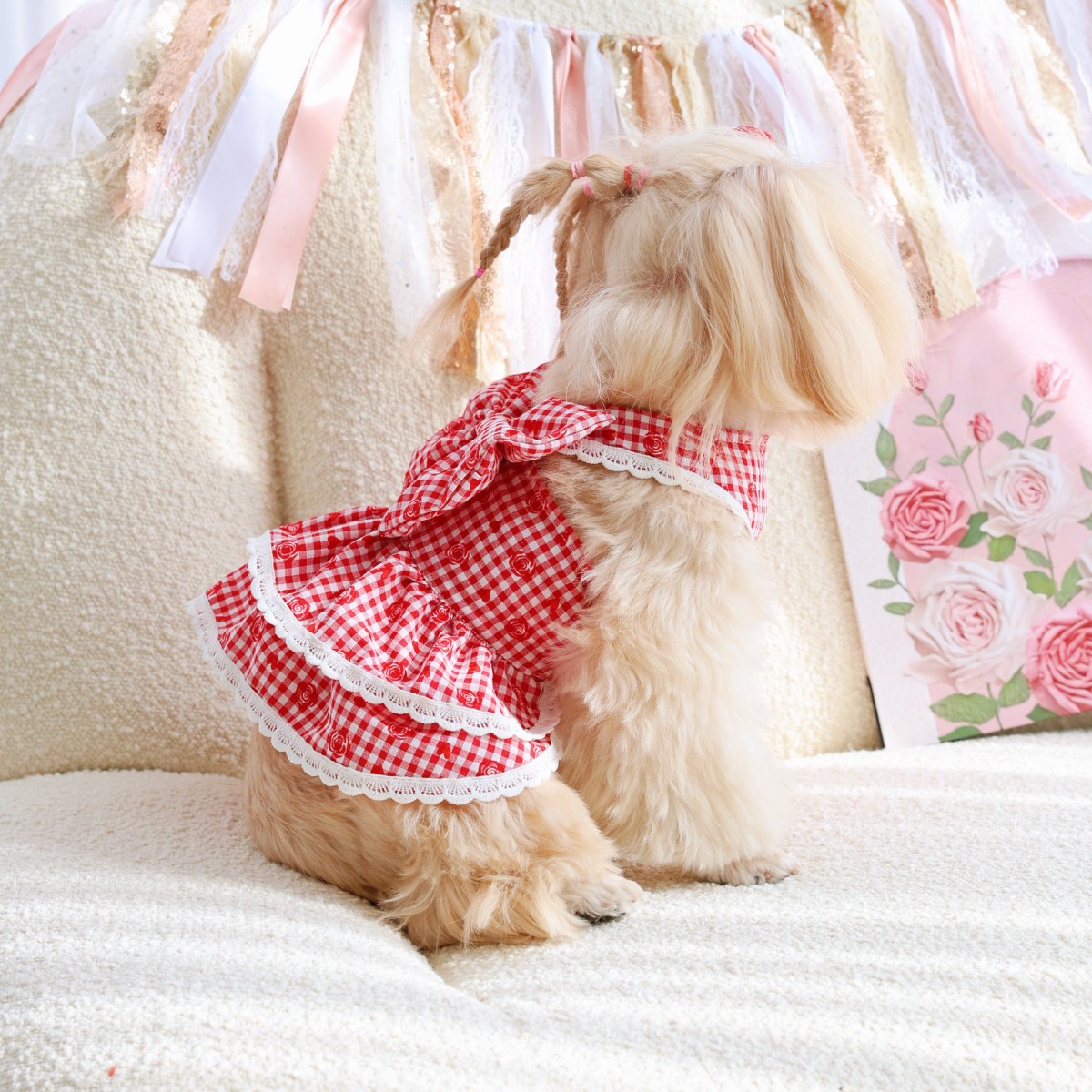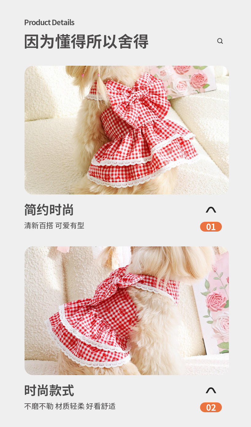 로즈플라워 더블 레이어 케이크 스커트, 고양이와 강아지에게 어울리는 레드 컬러, 애완견 의류, 애완동물 스커트, 애완동물 의류스토어 가기