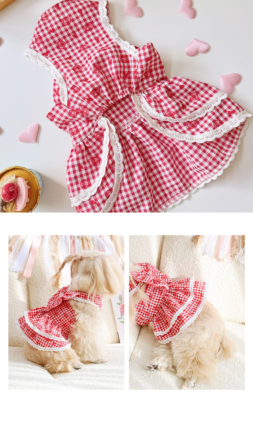 로즈플라워 더블 레이어 케이크 스커트, 고양이와 강아지에게 어울리는 레드 컬러, 애완견 의류, 애완동물 스커트, 애완동물 의류