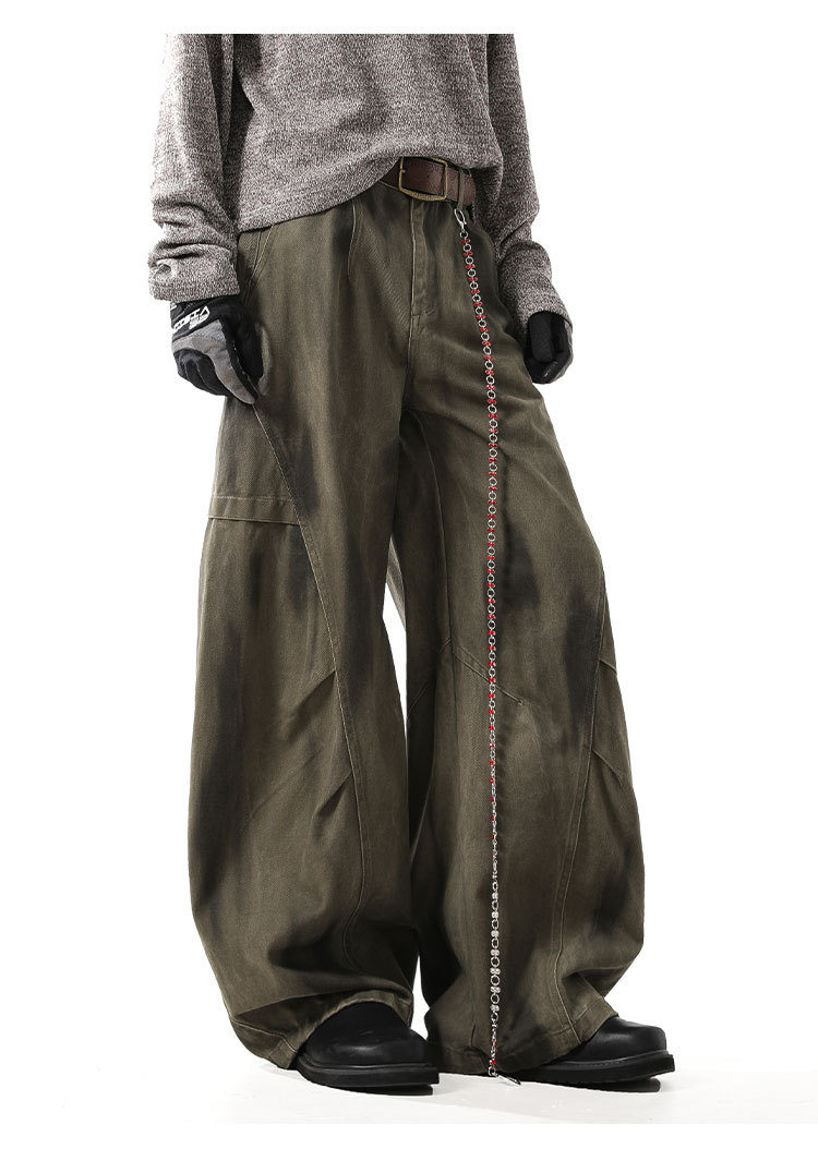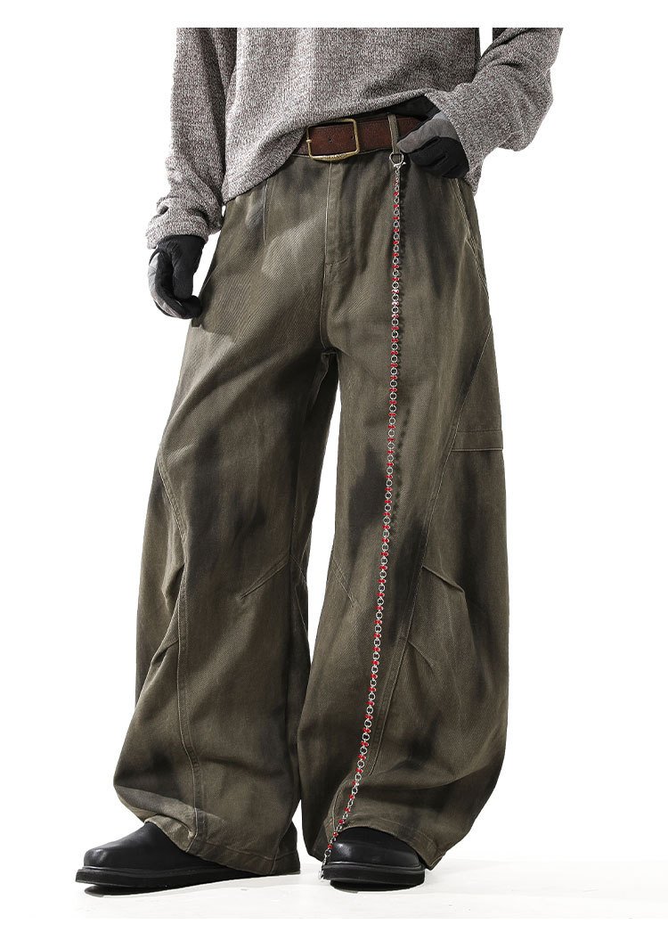 아메리칸 스타일 빈티지 바이브 세탁 올드 시미 타르 청바지 남성 트렌디 브랜드 루즈 올 매치 와이드 레그 캐주얼 오버볼스토어 가기