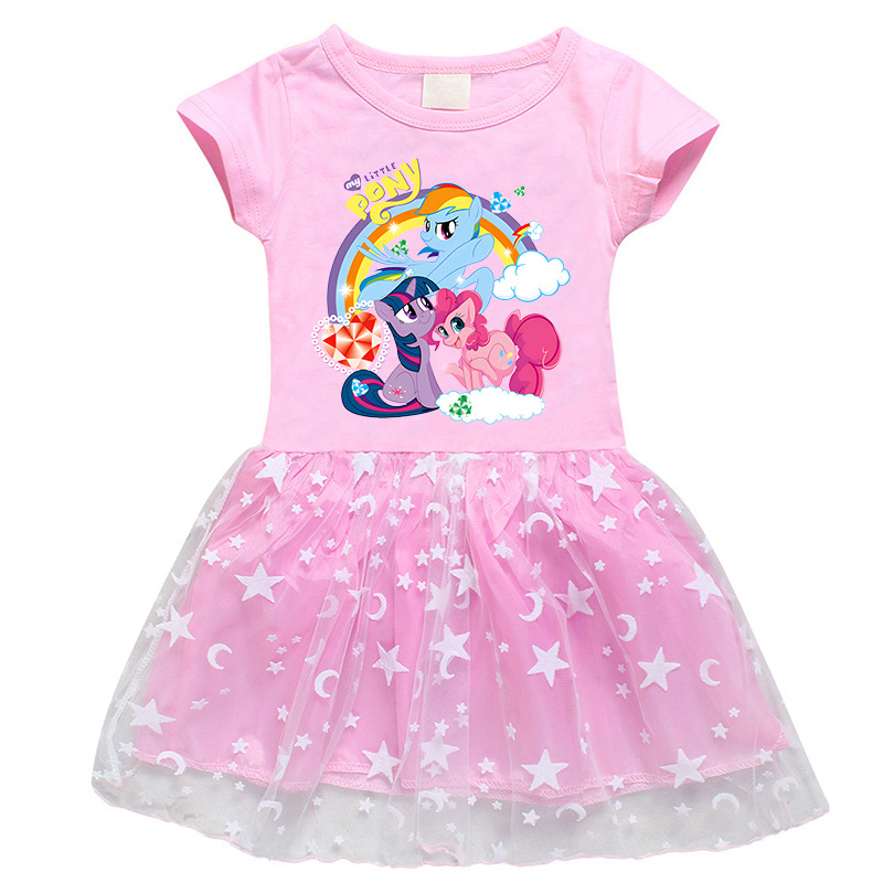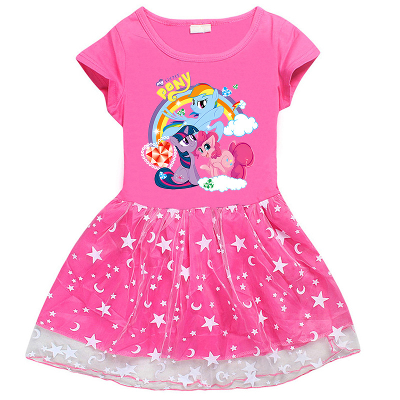 2025 한국식 여성 어린이 원피스 짧은 소매 여름 소녀의 봄과 가을 긴 소매 스타 메쉬 짧은 소매 공주 스커트스토어 가기