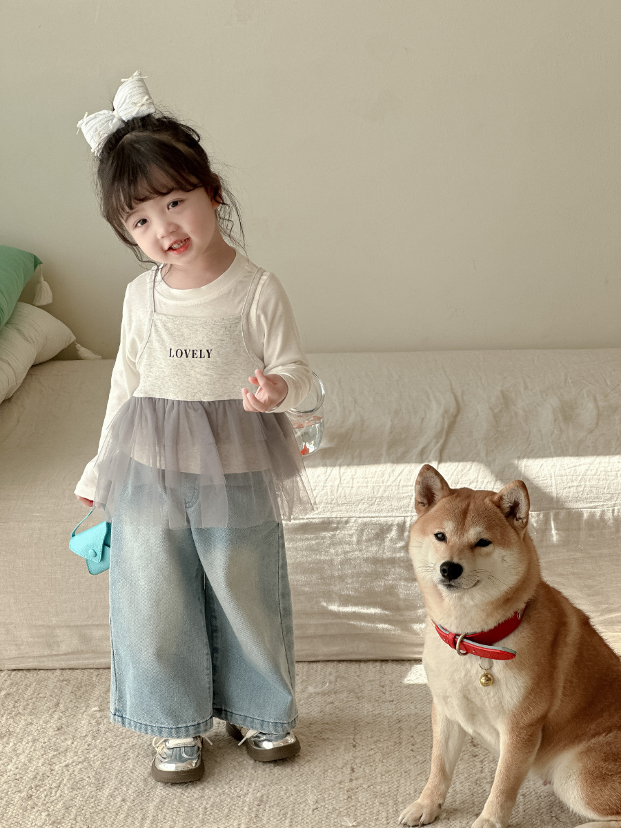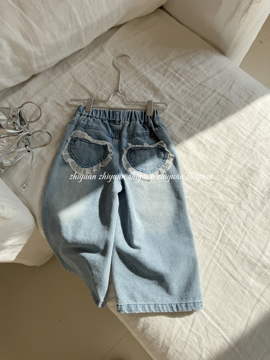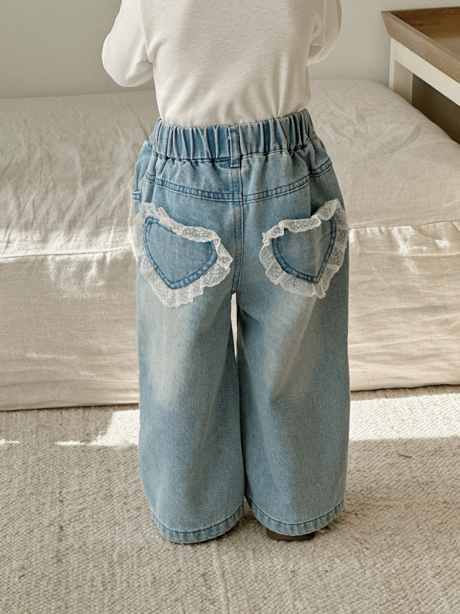 여자 레이스 스트레이트 청바지 2021 봄 아동 의류 바지 아동 한국 스타일 와이드 레그 데님 바지스토어 가기