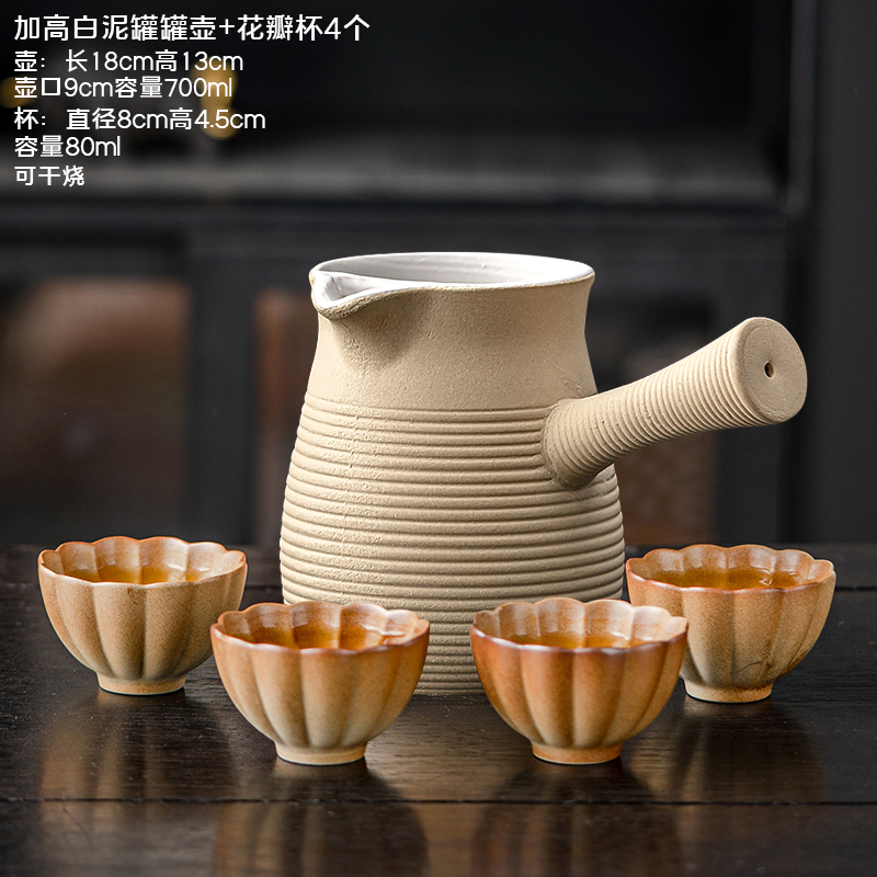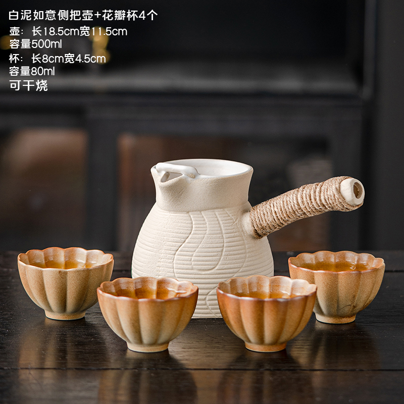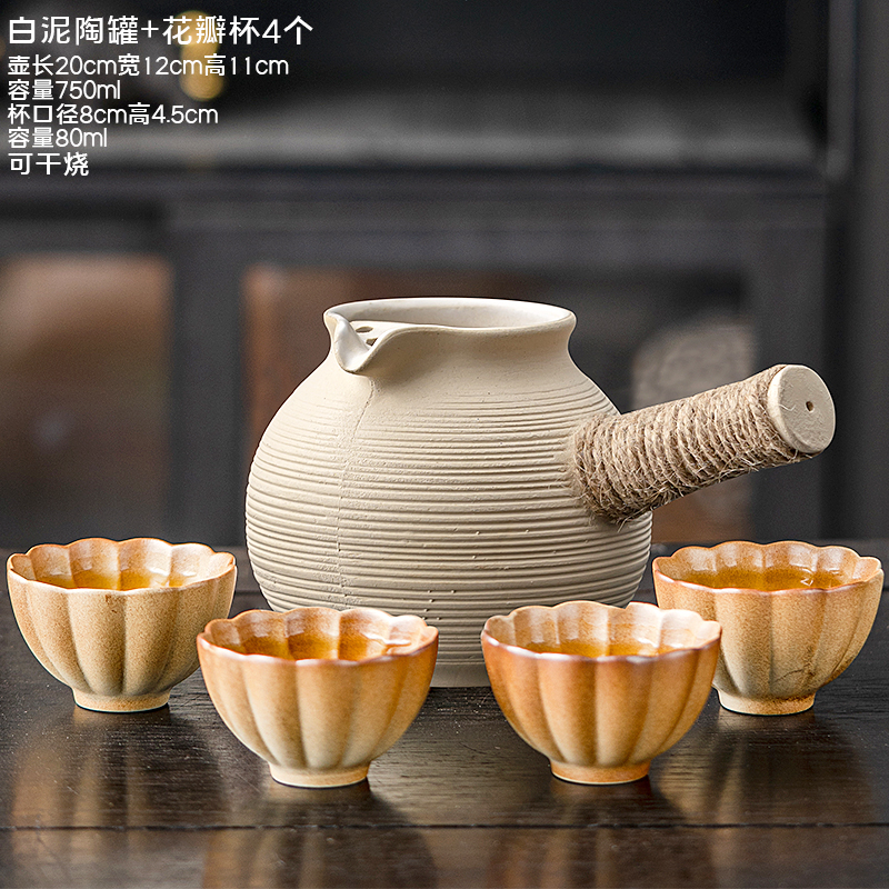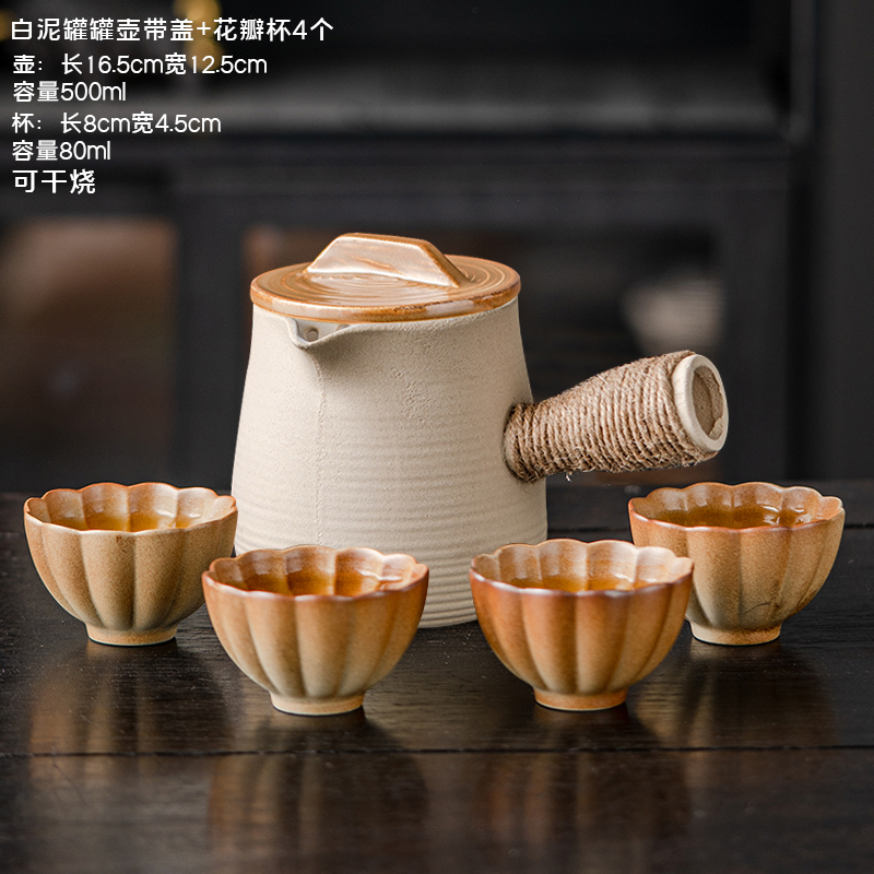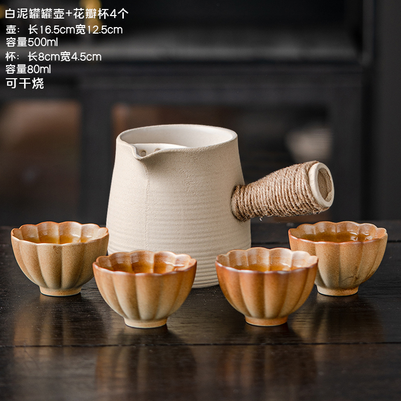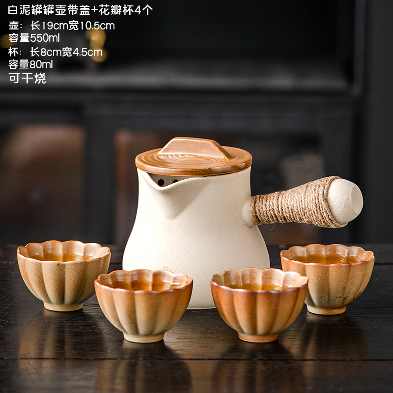 • 흰색 점토 항아리 찻주전자 + 꽃잎 컵 4개