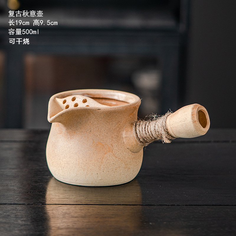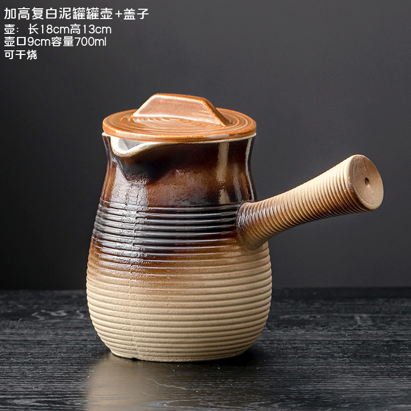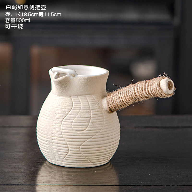 • 나무 매트 + 흰색 점토 Ruyi 측면 손잡이가 있는 중간 숯불 난로