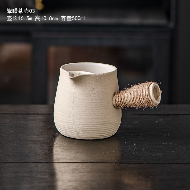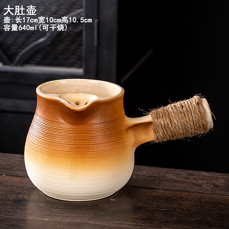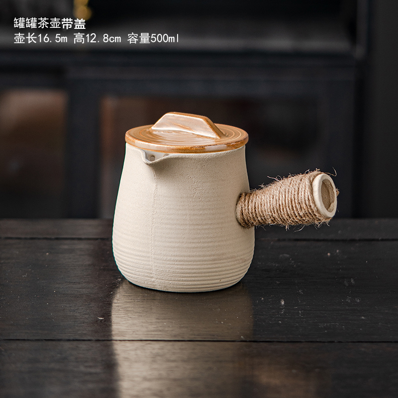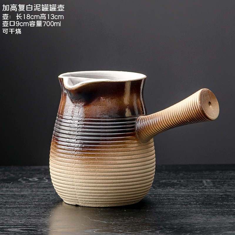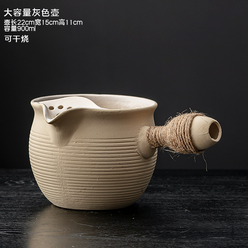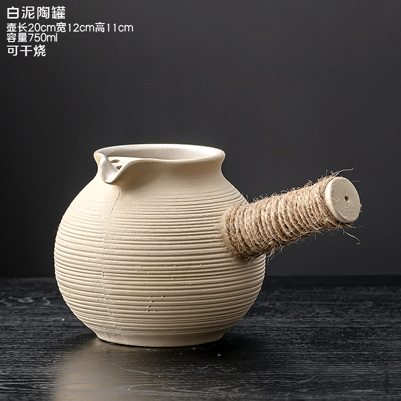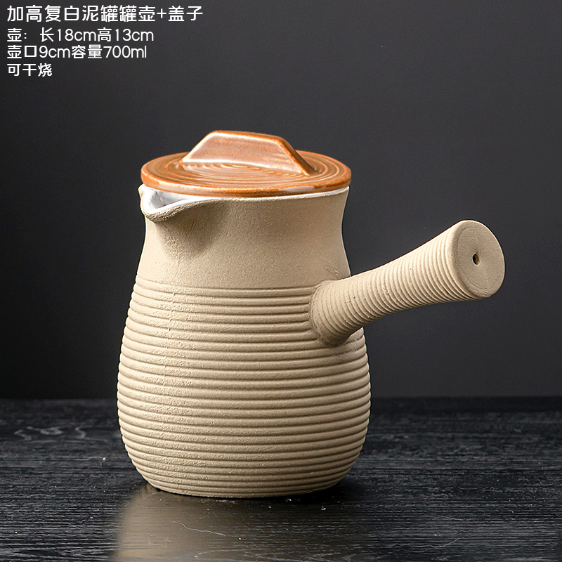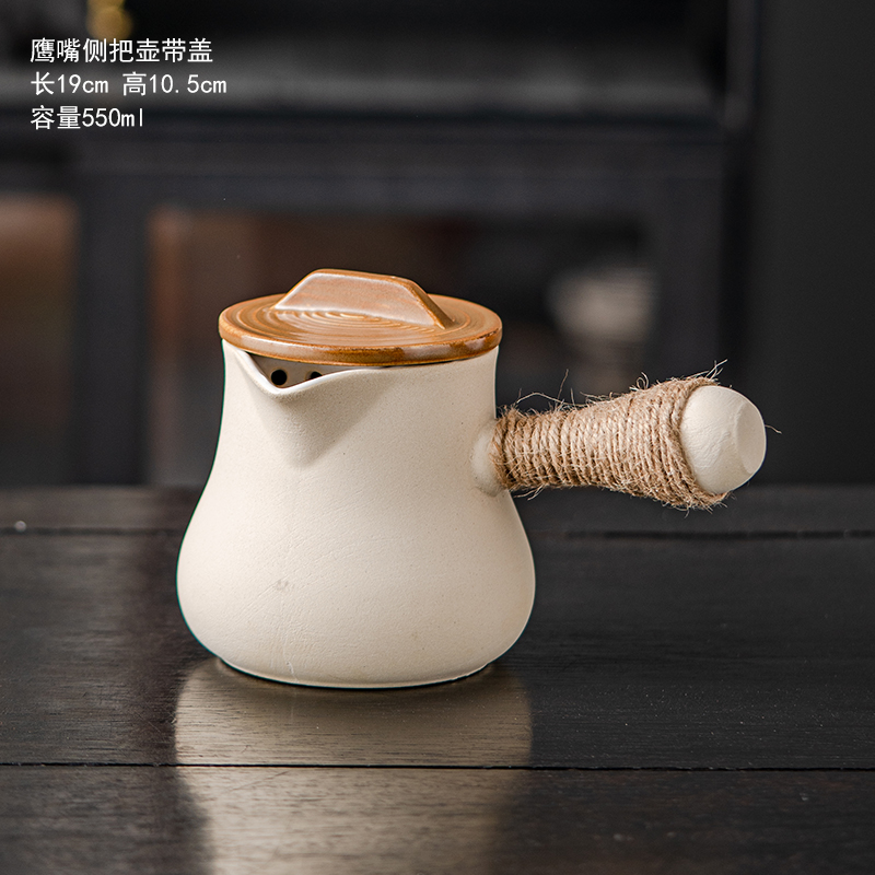 • 나무 매트가 있는 중형 숯불 난로 + 흰색 점토 홍차 측면 손잡이 냄비 + 용알 컵 6개