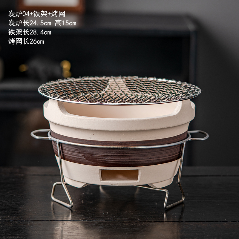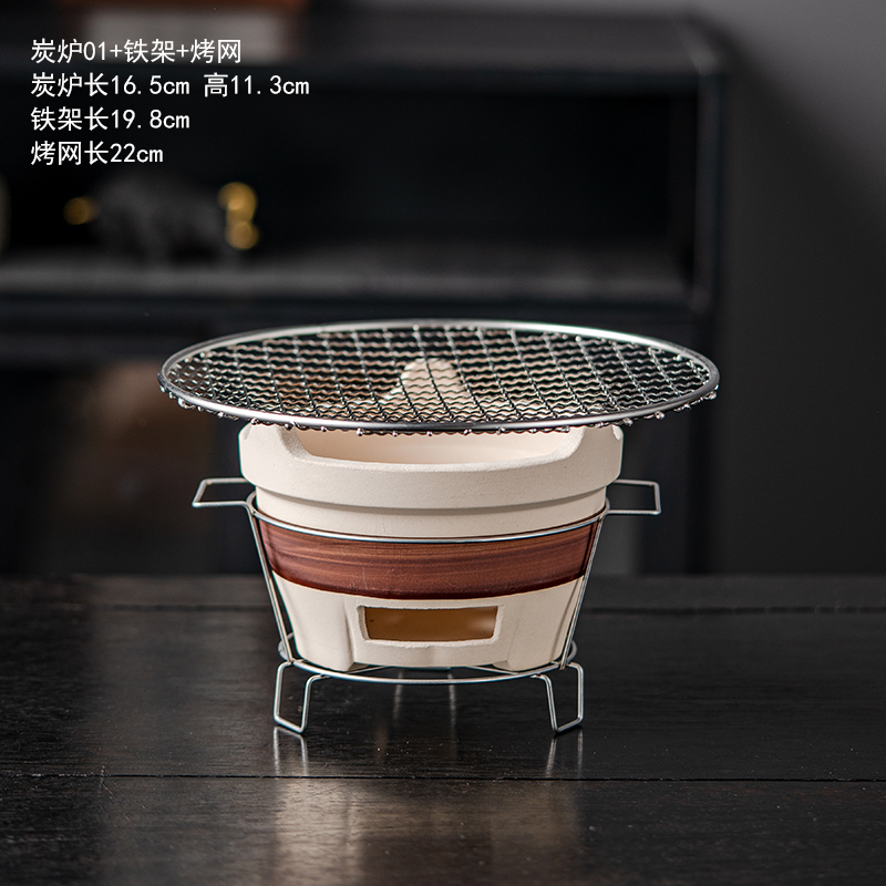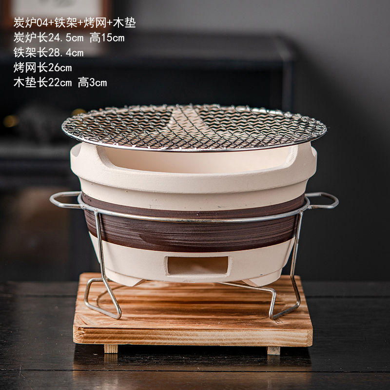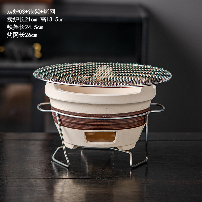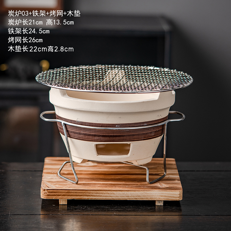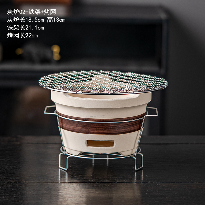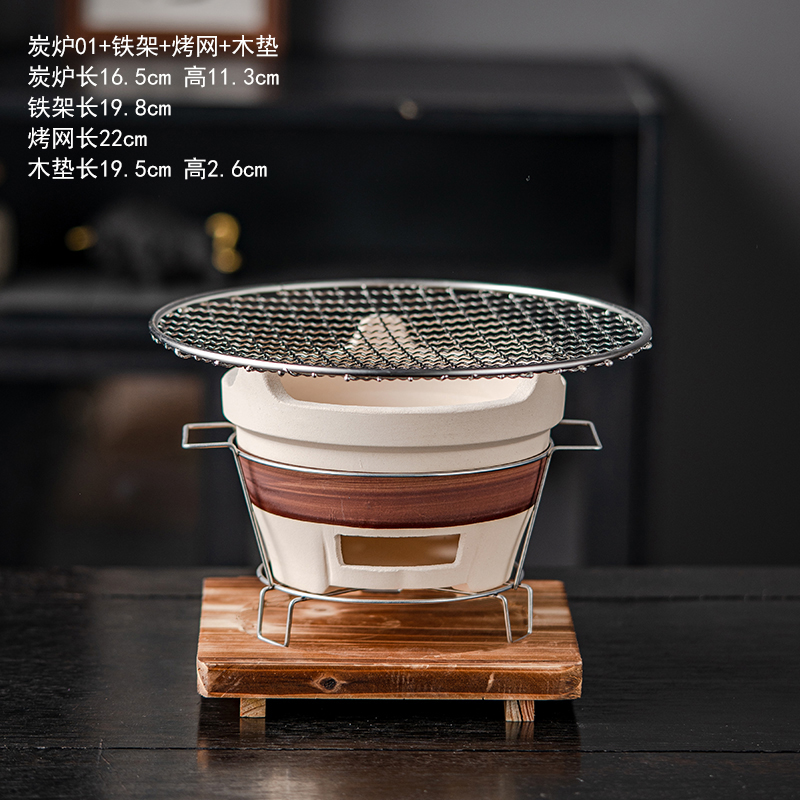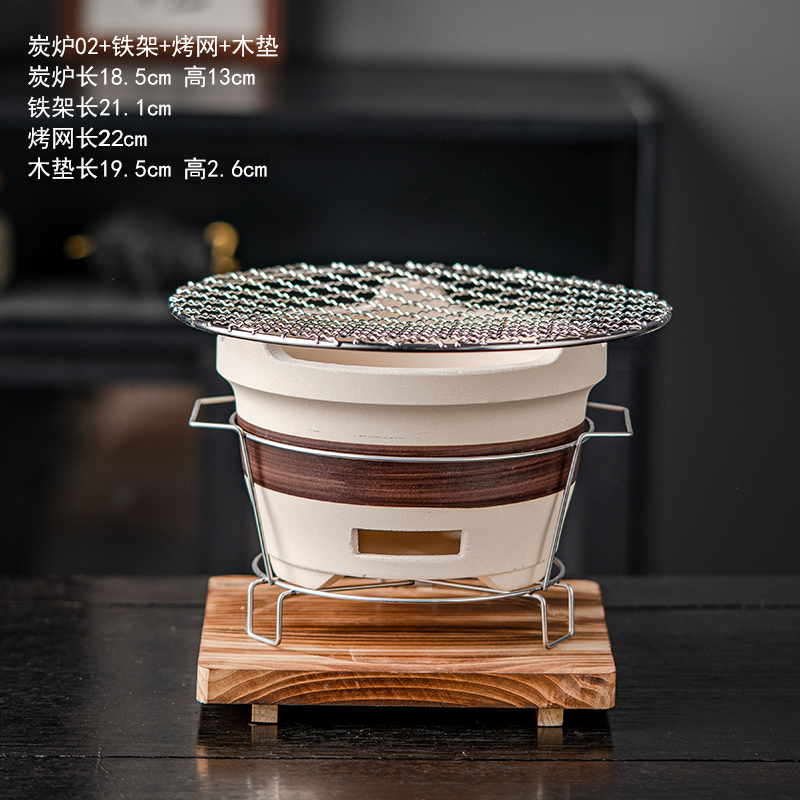 • 나무 매트 + 흰색 점토 냄비 주전자가 있는 중간 숯불 난로