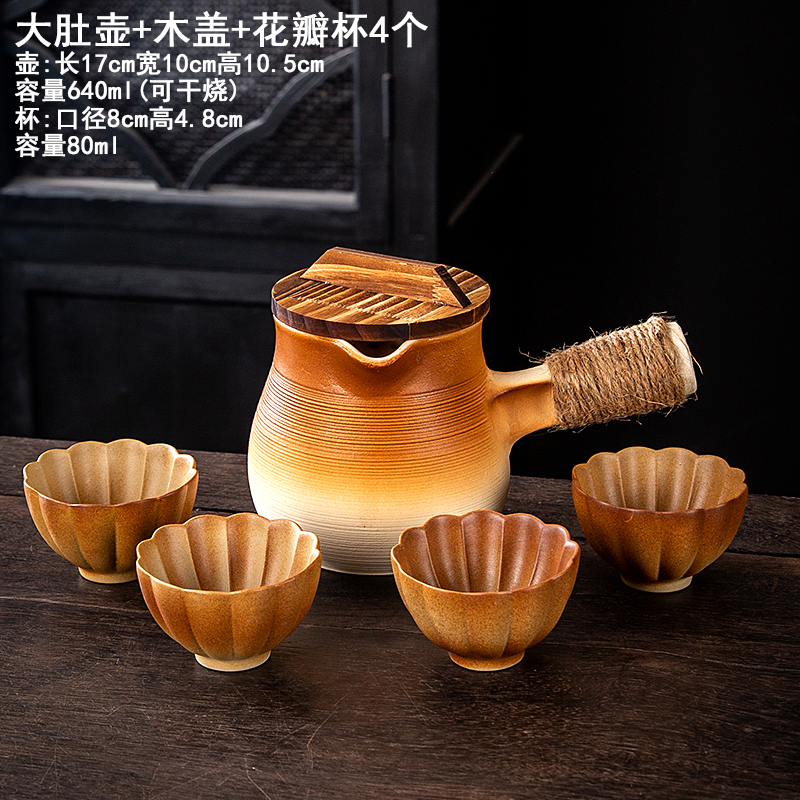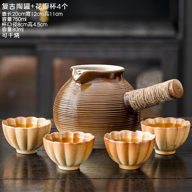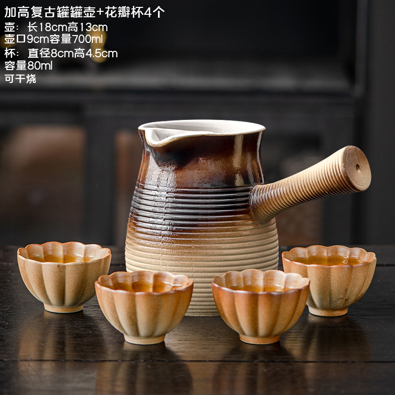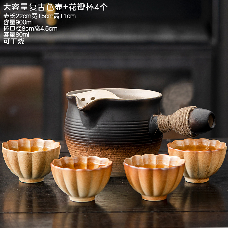 • 뚜껑이 있는 복고풍 항아리 찻주전자 + 꽃잎 컵 4개
