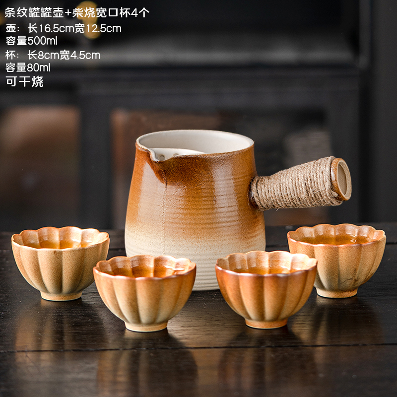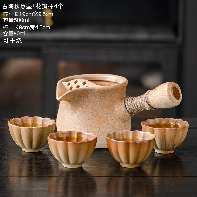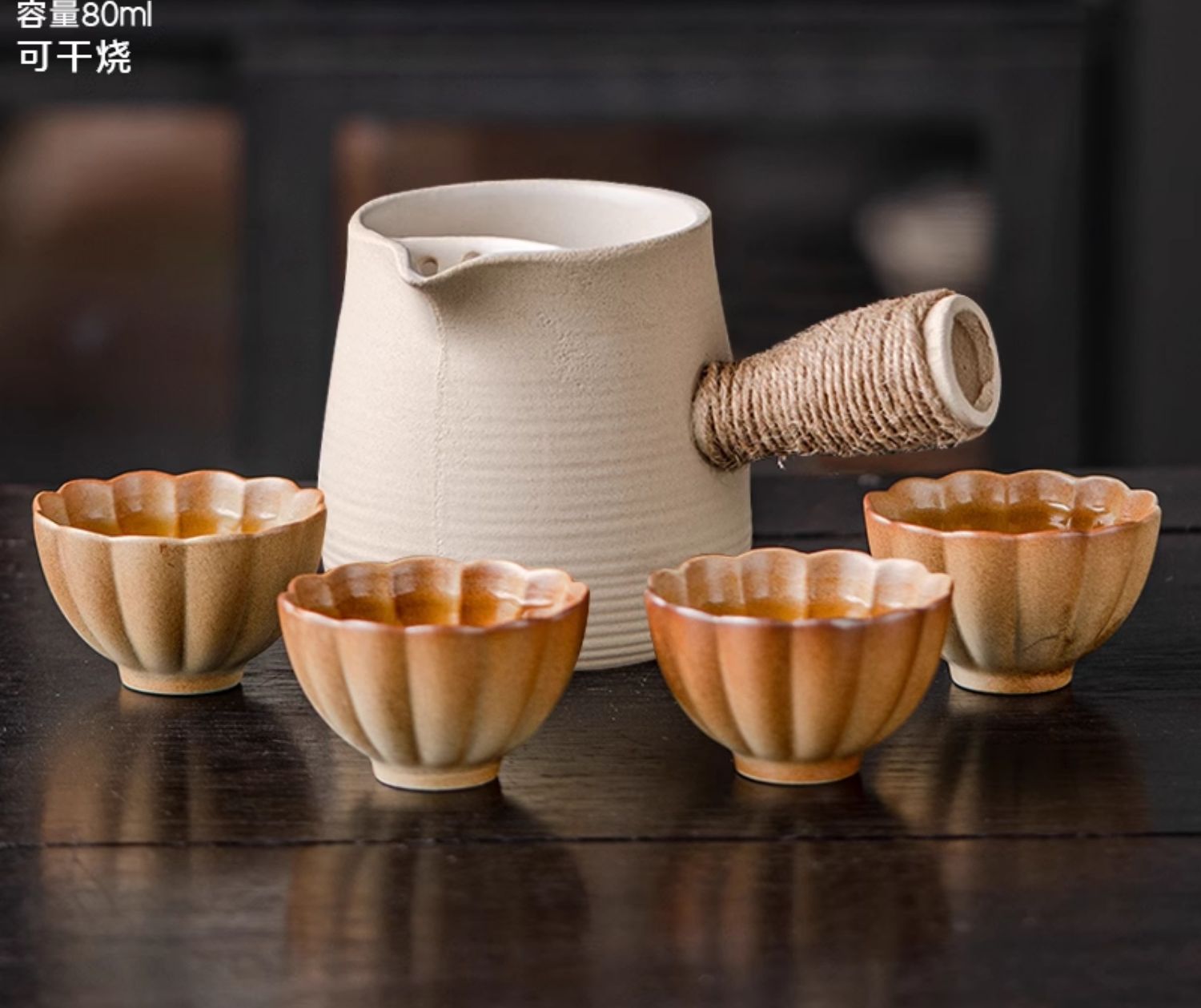 • 고대 도자기 가을 냄비 + 꽃잎 컵 4개