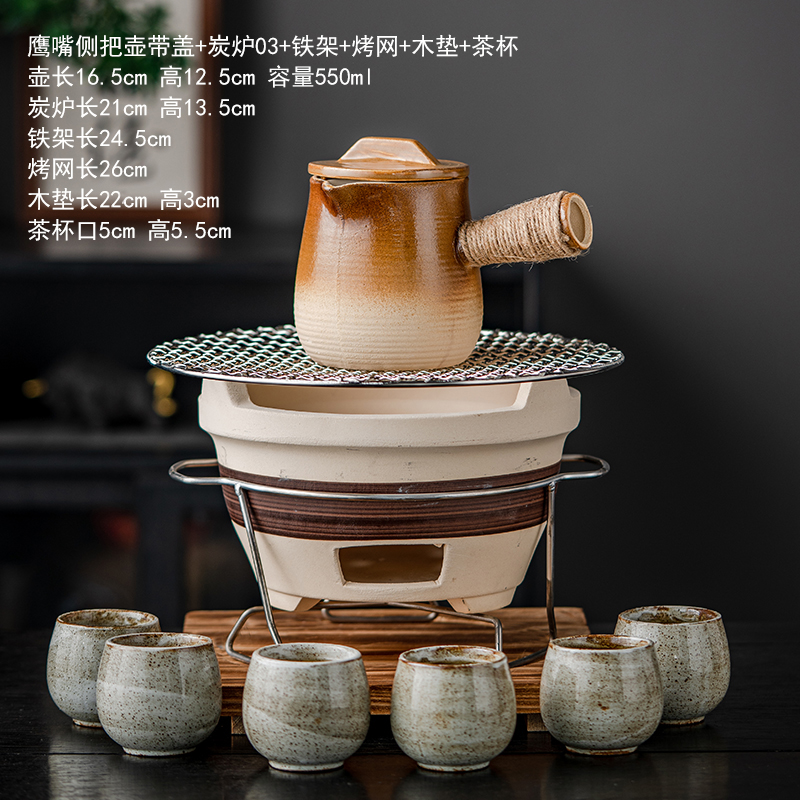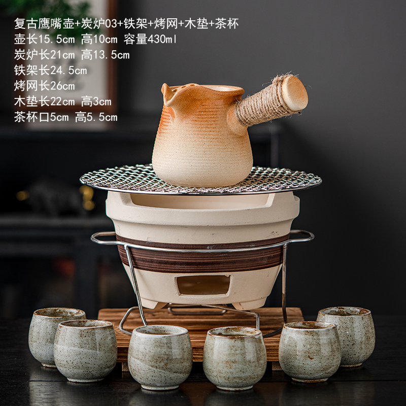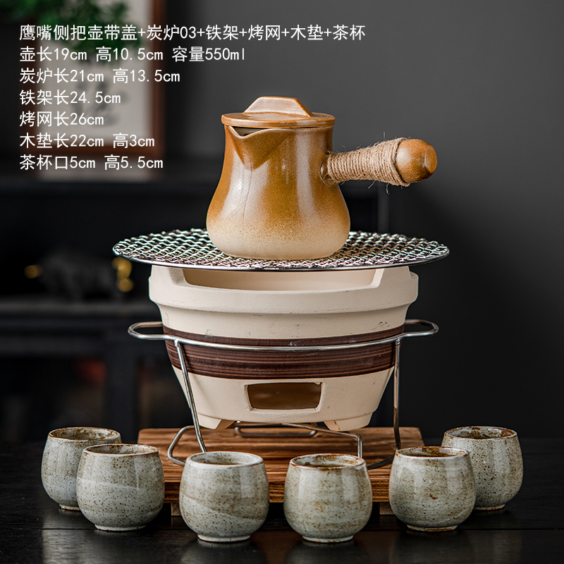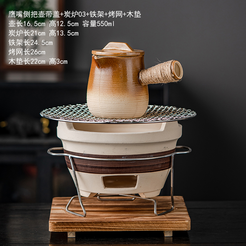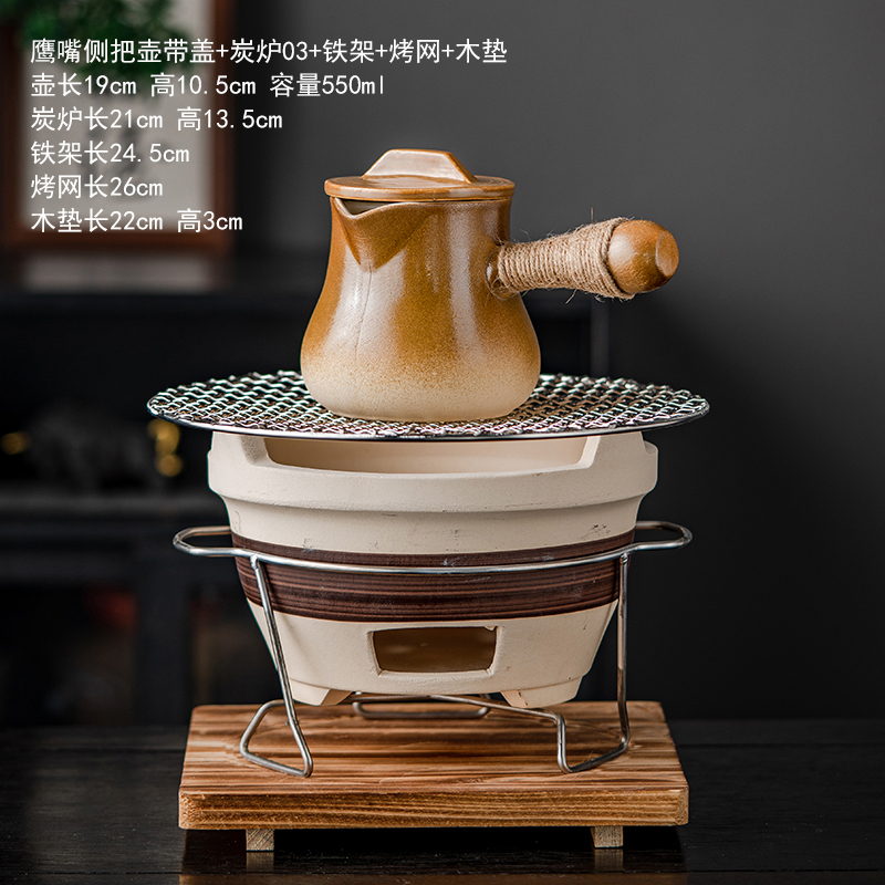 • 나무 매트가 있는 중형 숯불 난로 + 고대 도자기 독수리 부리 냄비 + 용알 컵 6개