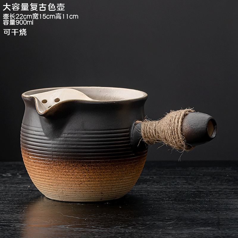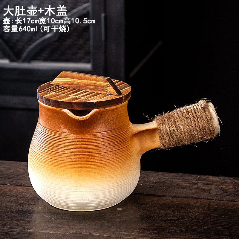 • 나무 매트 + 진한 노란색 홍차 측면 손잡이 냄비가 있는 중간 숯불 난로