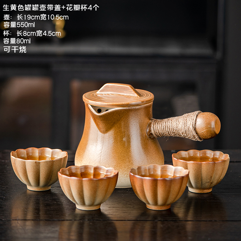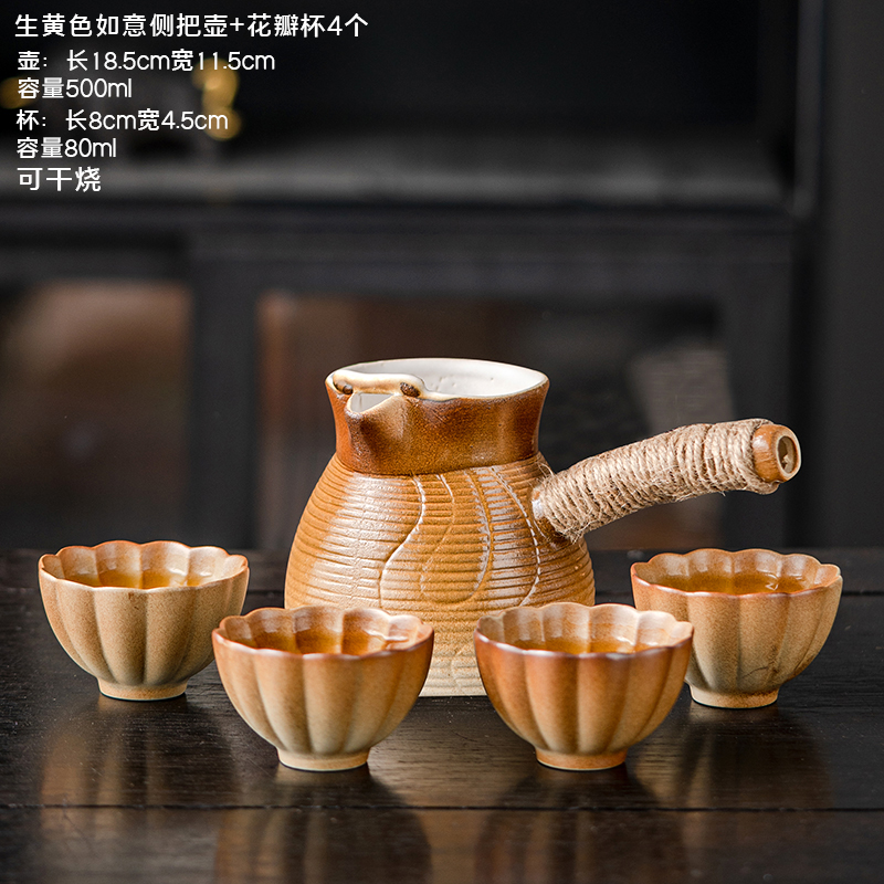 • 진한 노란색 Ruyi 측면 손잡이 냄비 + 꽃잎 컵 4개