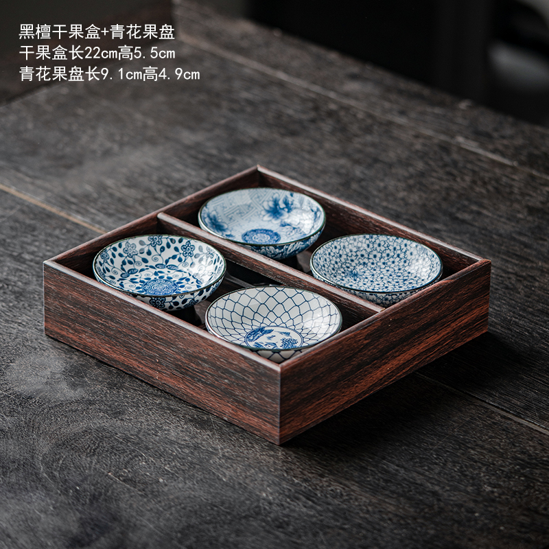 • 흑단 4각형 격자 + 파란색과 흰색 과일 접시 4종 세트