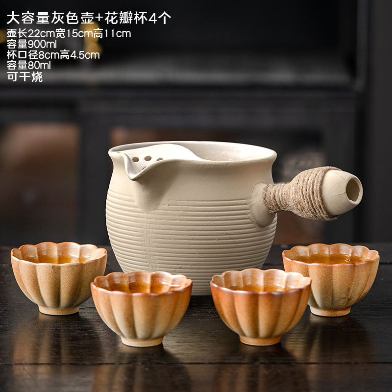 • 강화된 흰색 점토 냄비 + 꽃잎 컵 4개
