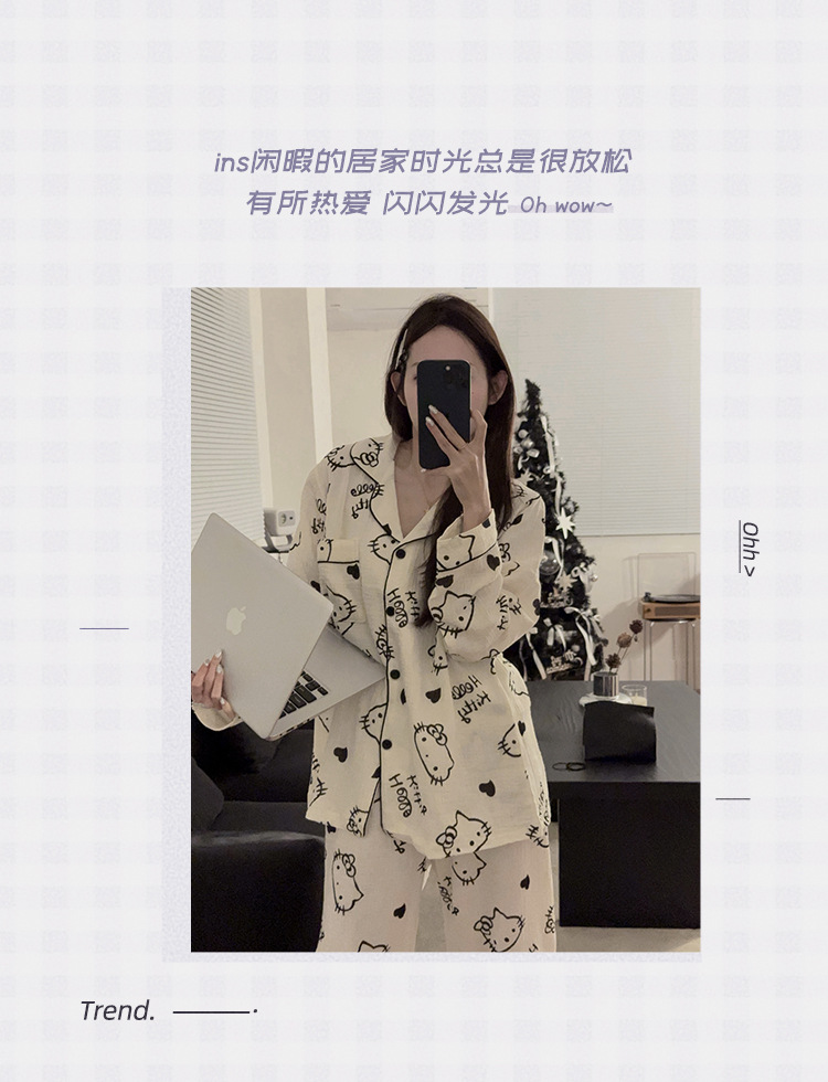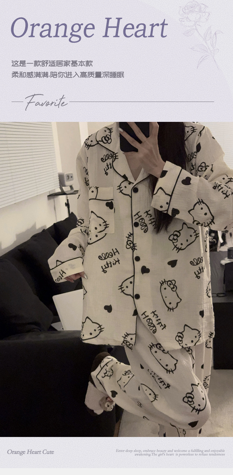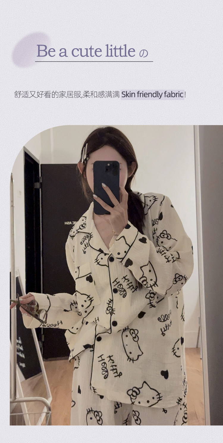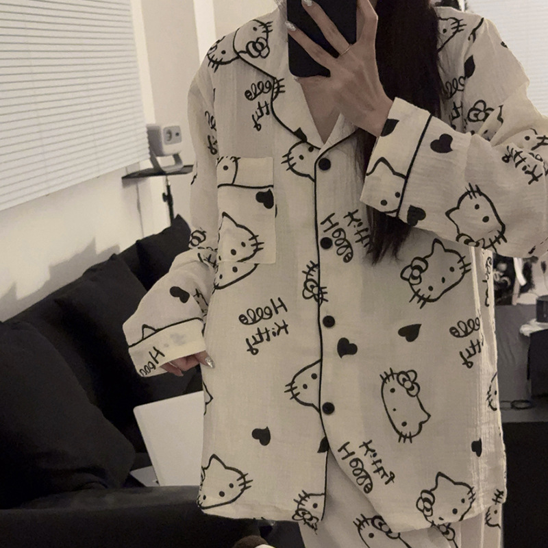 일본 Ins 파자마 여성 아기 면 봄과 가을 새로운 만화 긴 소매 귀여운 학생 홈 옷 여성용 2 피스 세트스토어 가기