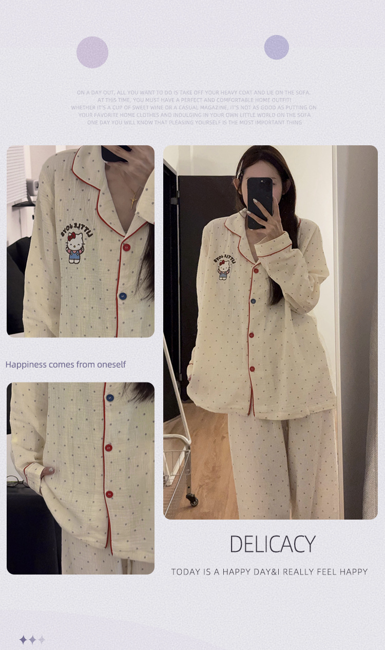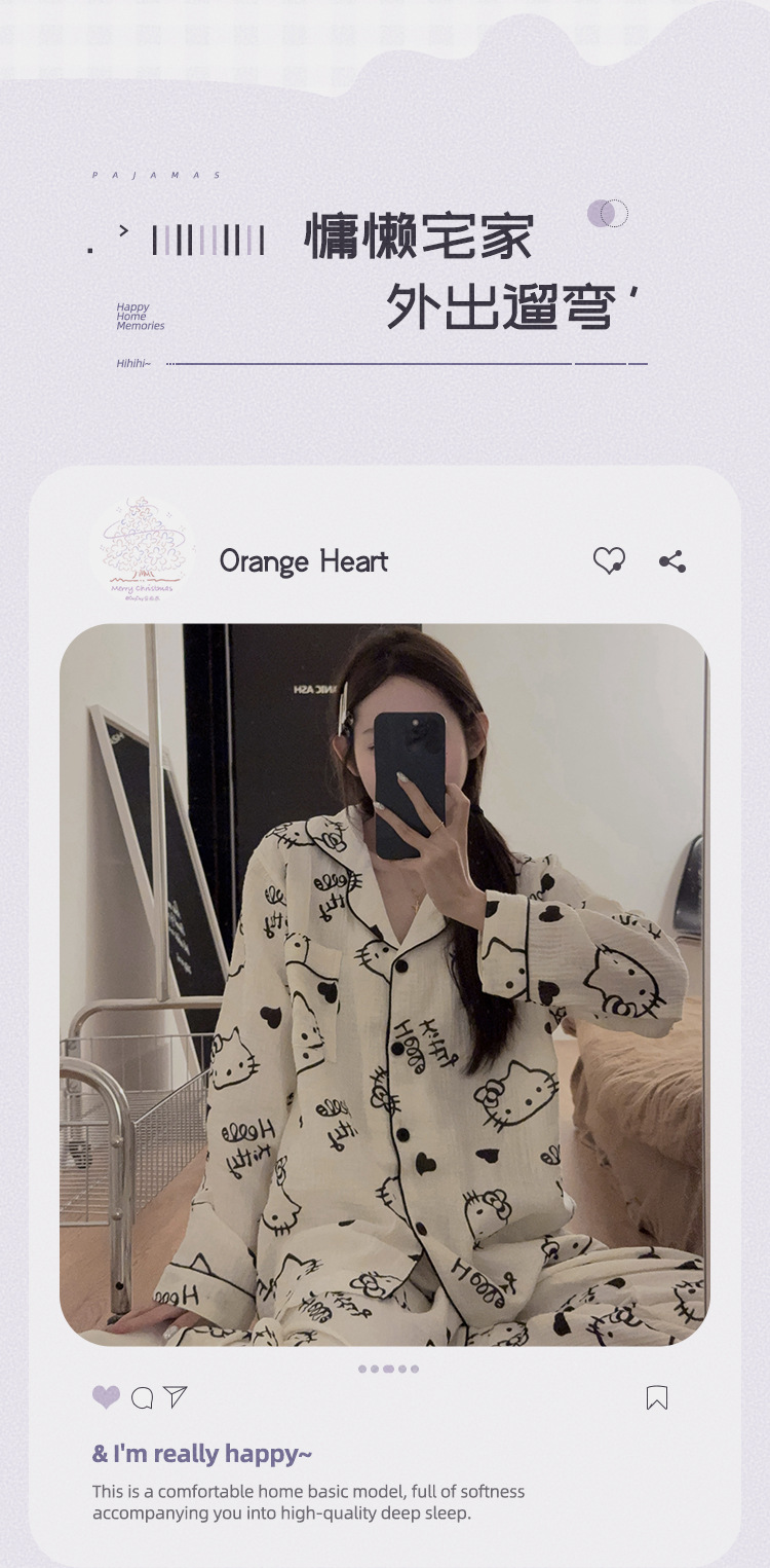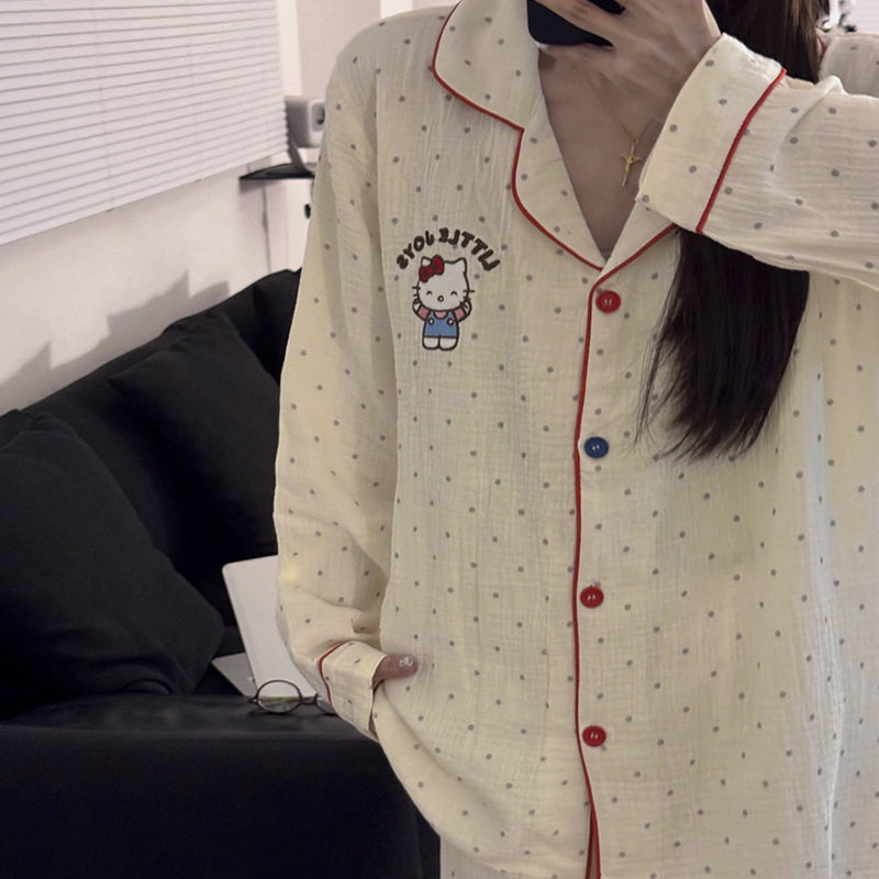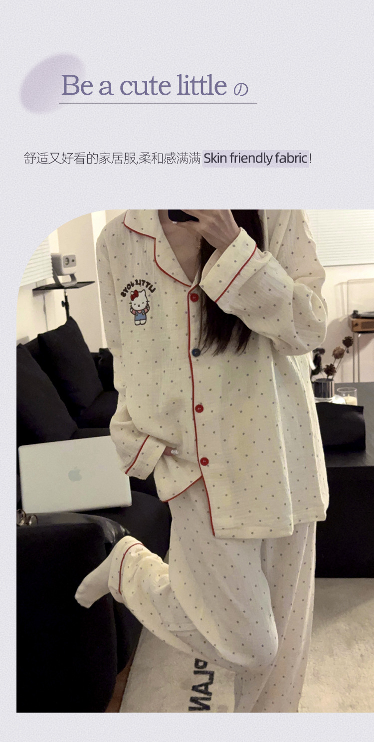 일본 Ins 파자마 여성 아기 면 봄과 가을 새로운 만화 긴 소매 귀여운 학생 홈 옷 여성용 2 피스 세트스토어 가기