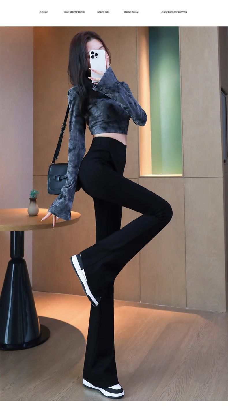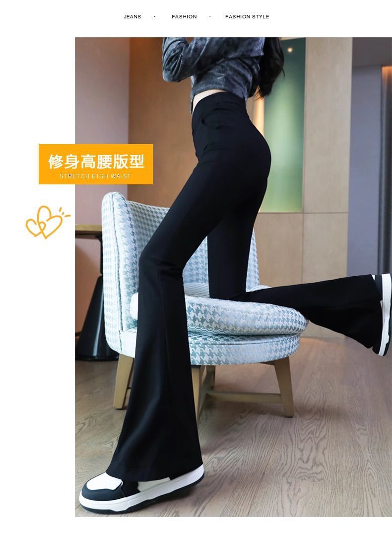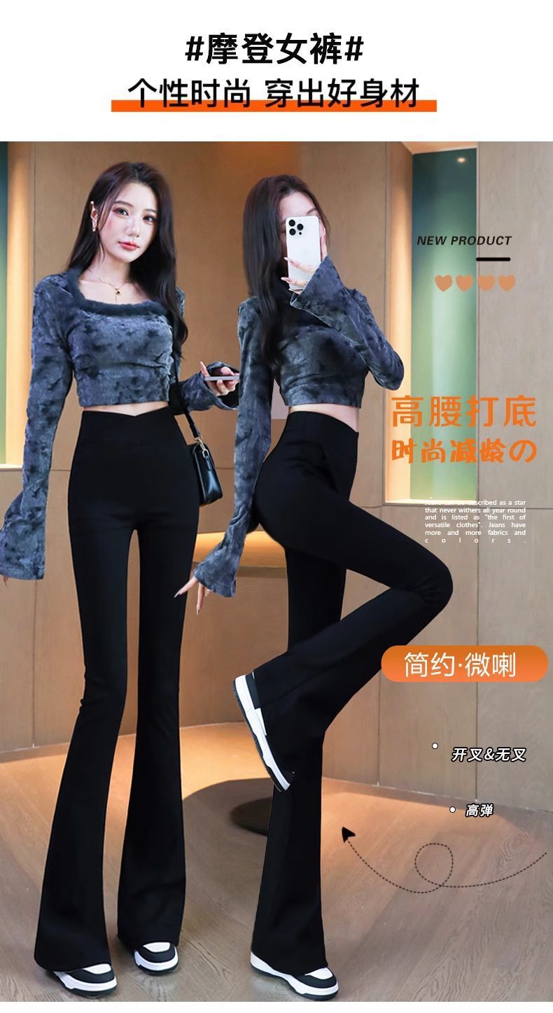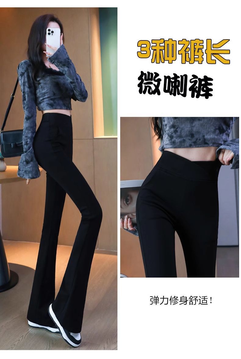 검은 색 마이크로 바지 여성의 가을과 겨울 기모 2024 새로운 폭발 높은 허리 슬리밍 탄성 슬림 작은 벨 바지스토어 가기