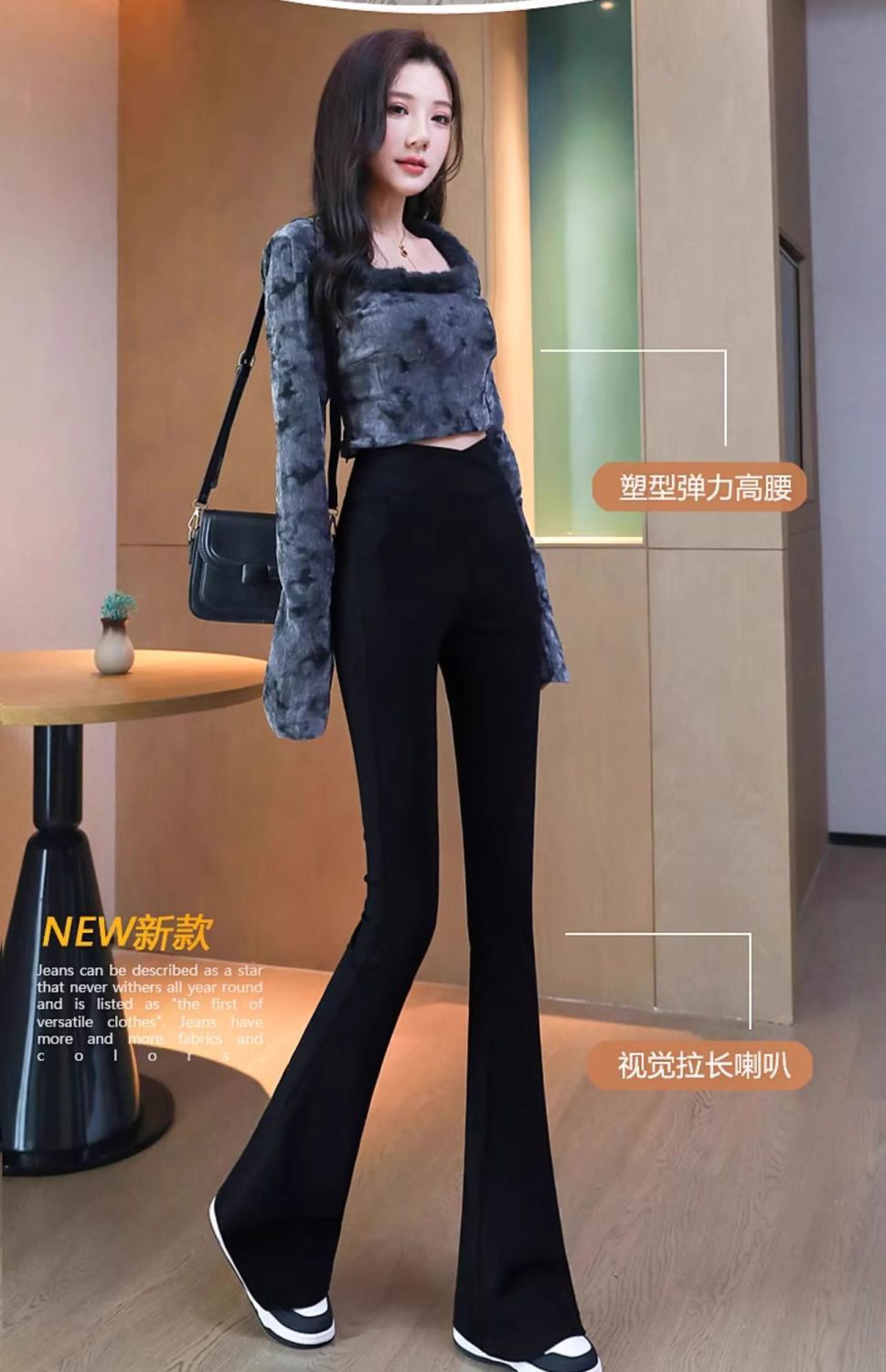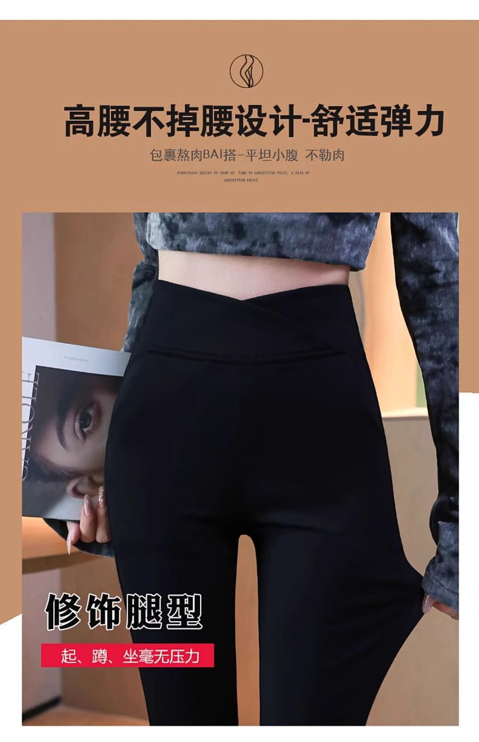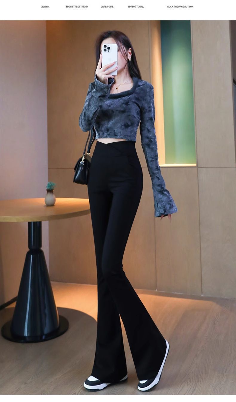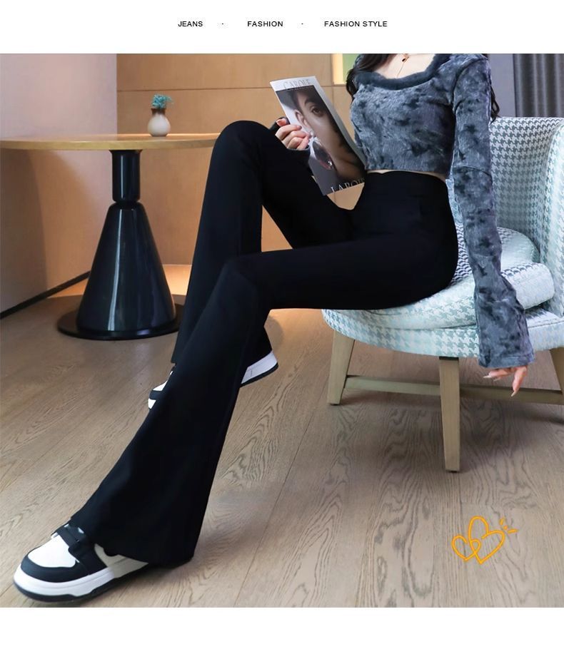 검은 색 마이크로 바지 여성의 가을과 겨울 기모 2024 새로운 폭발 높은 허리 슬리밍 탄성 슬림 작은 벨 바지스토어 가기