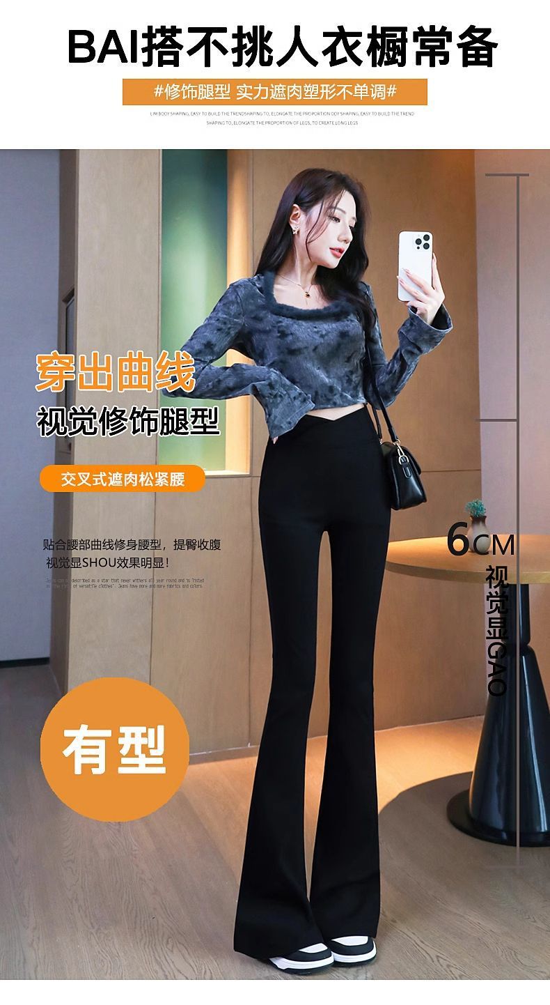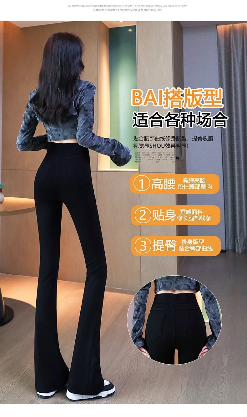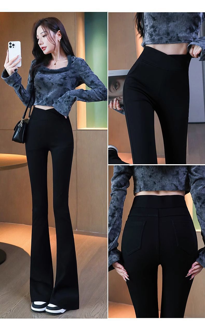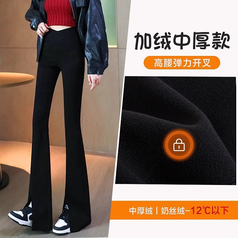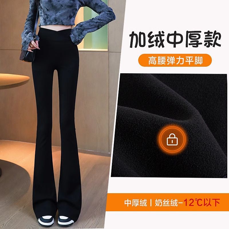 검은 색 마이크로 바지 여성의 가을과 겨울 기모 2024 새로운 폭발 높은 허리 슬리밍 탄성 슬림 작은 벨 바지