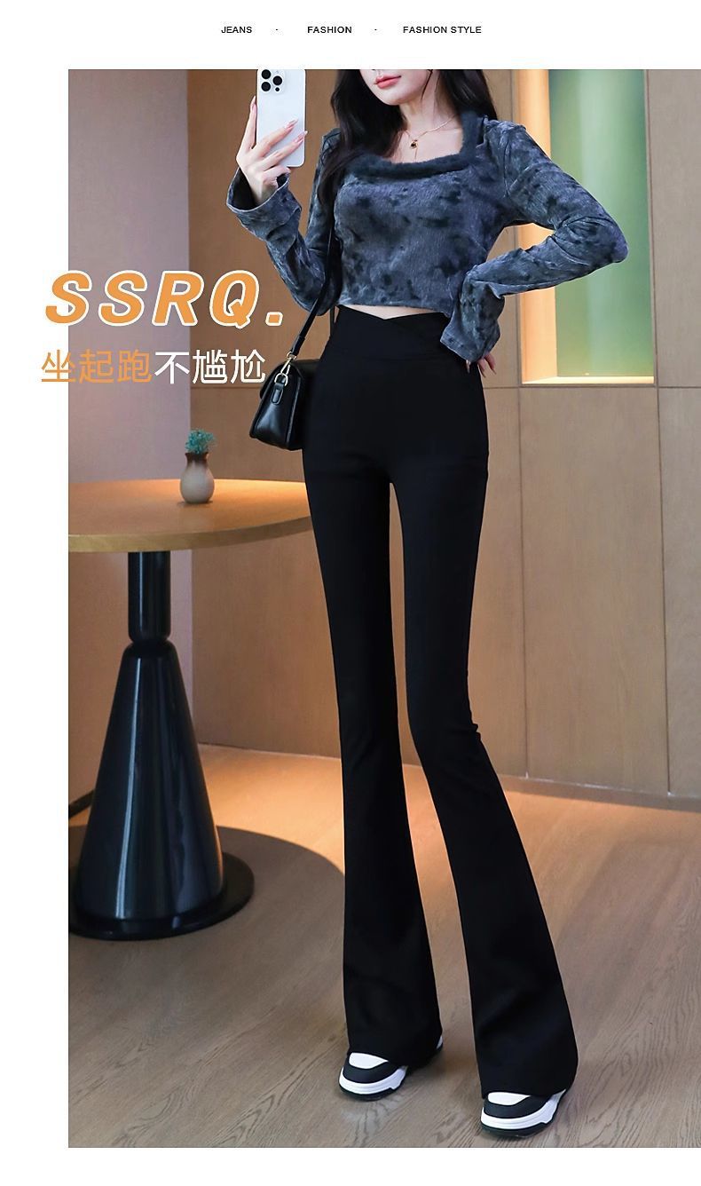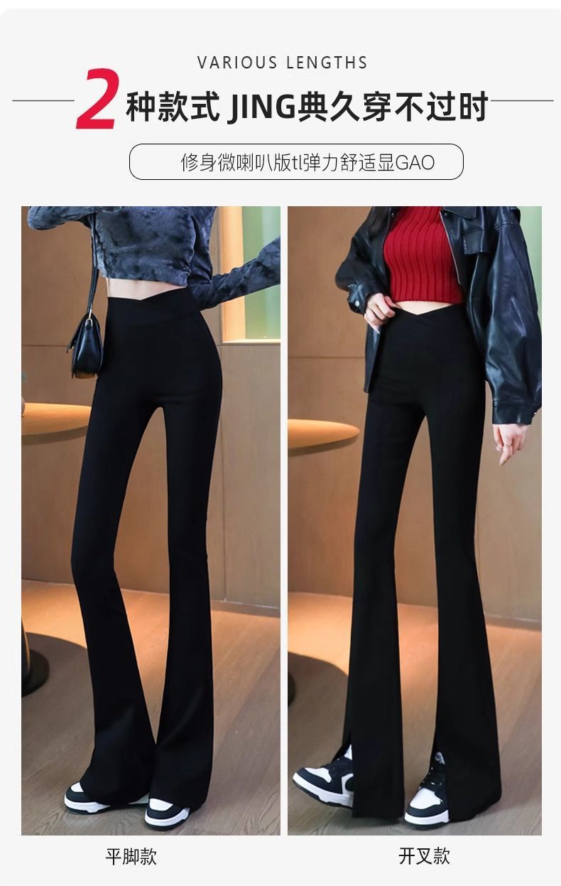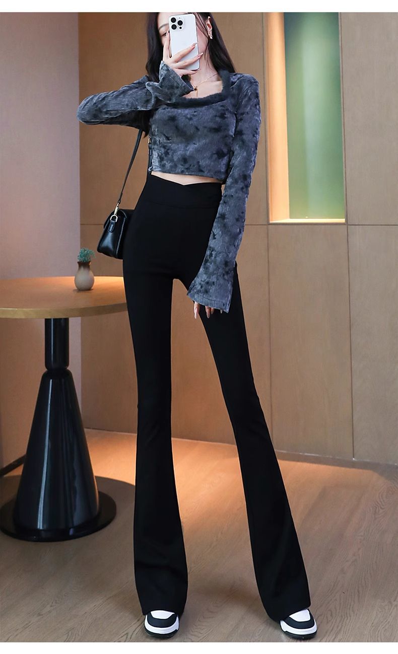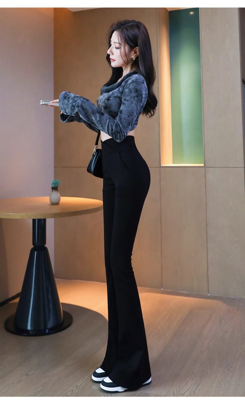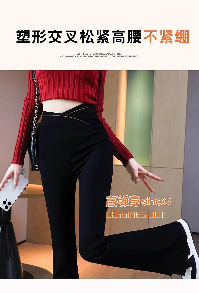검은 색 마이크로 바지 여성의 가을과 겨울 기모 2024 새로운 폭발 높은 허리 슬리밍 탄성 슬림 작은 벨 바지