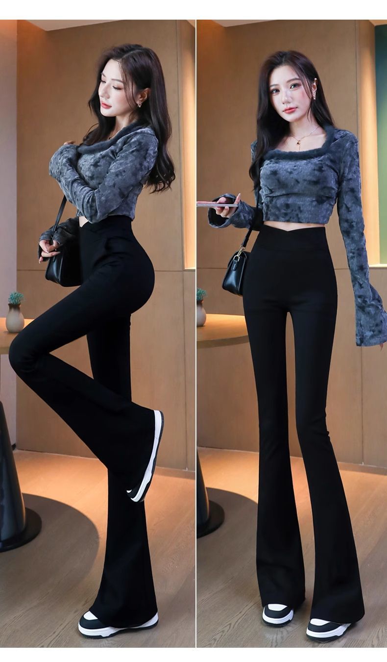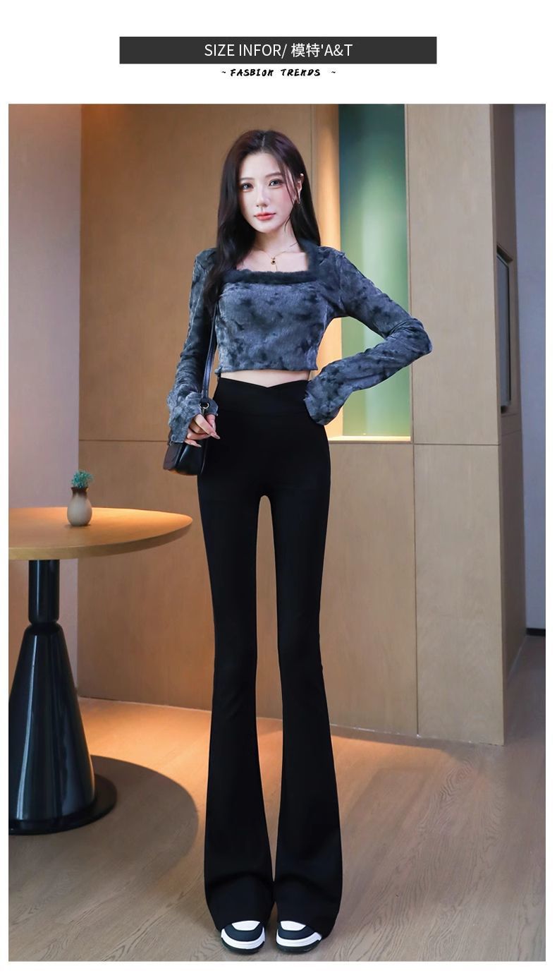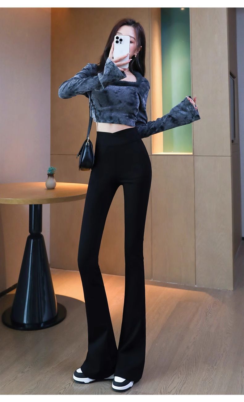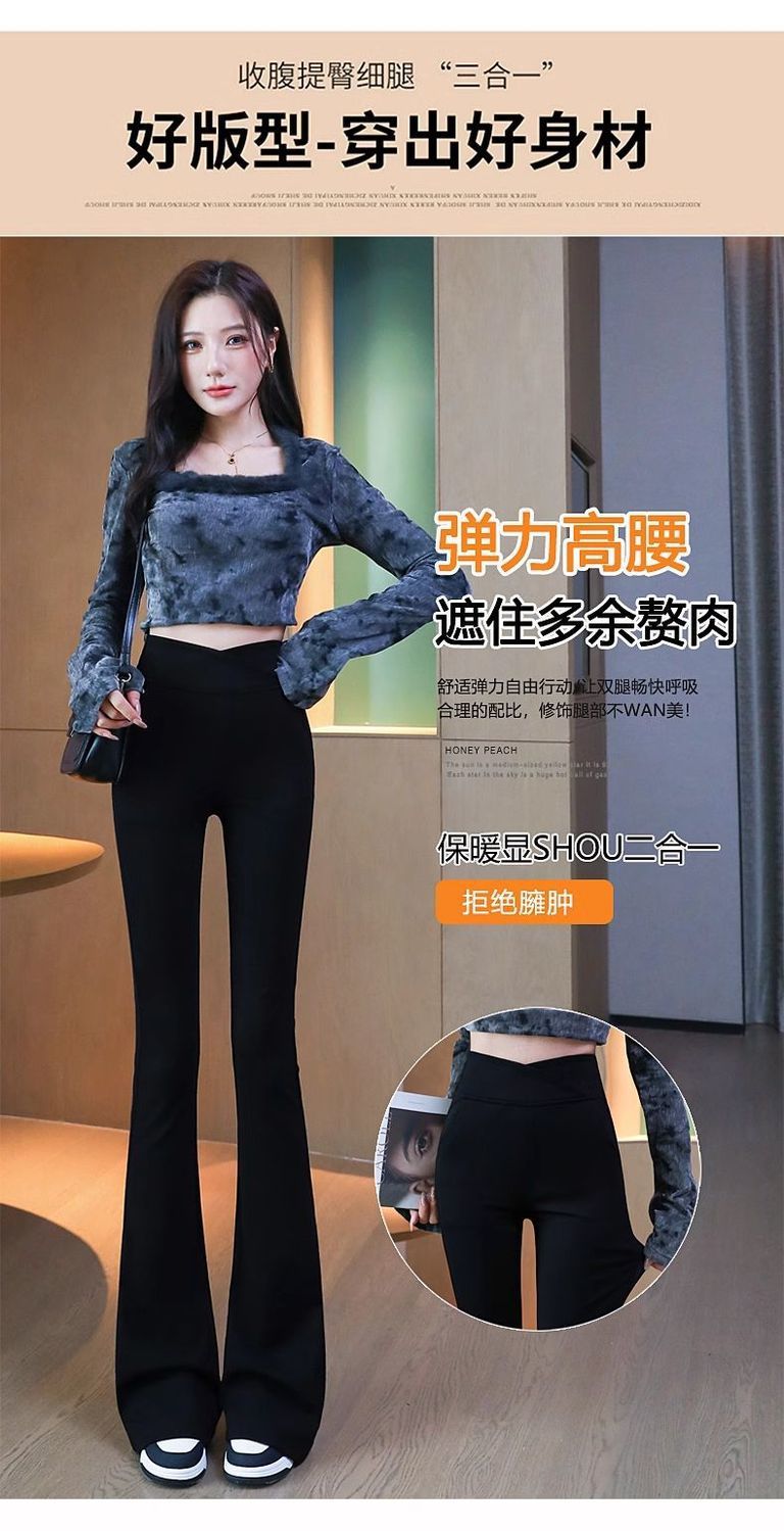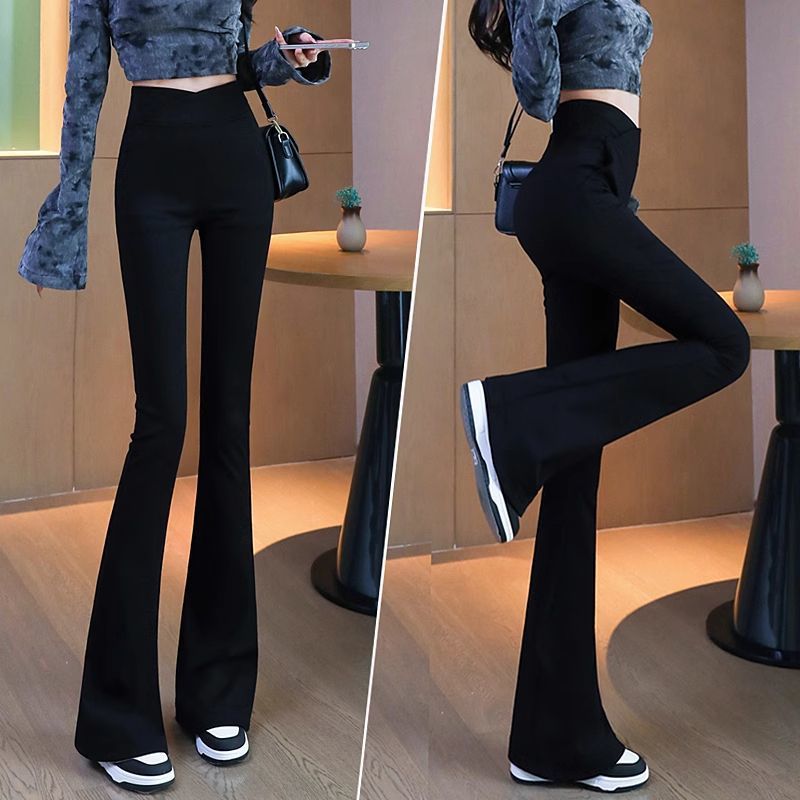 검은 색 마이크로 바지 여성의 가을과 겨울 기모 2024 새로운 폭발 높은 허리 슬리밍 탄성 슬림 작은 벨 바지