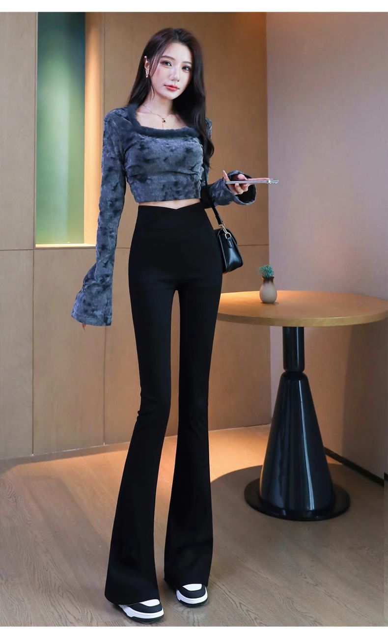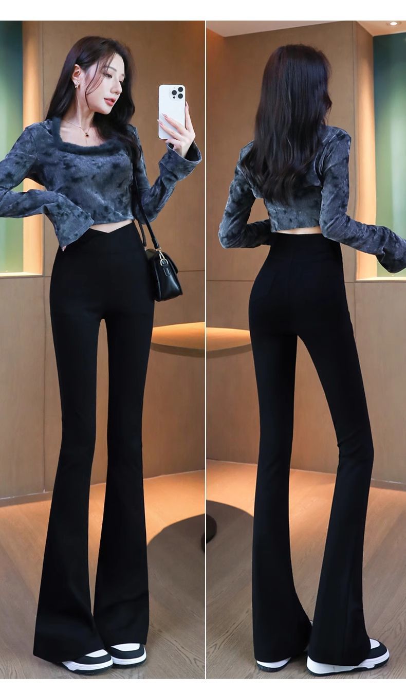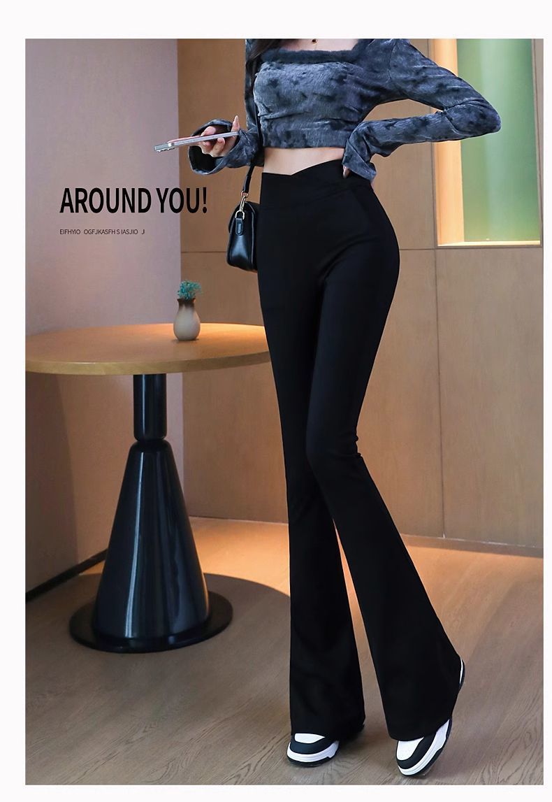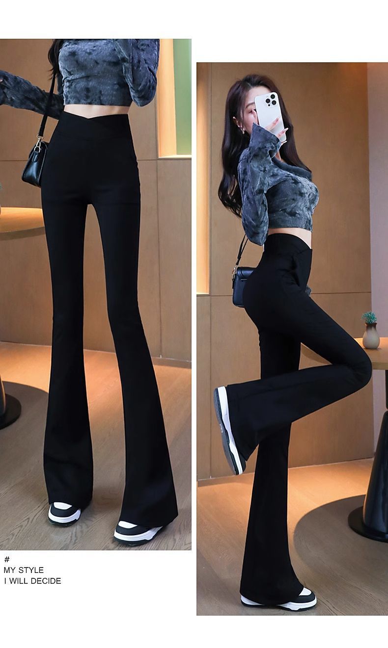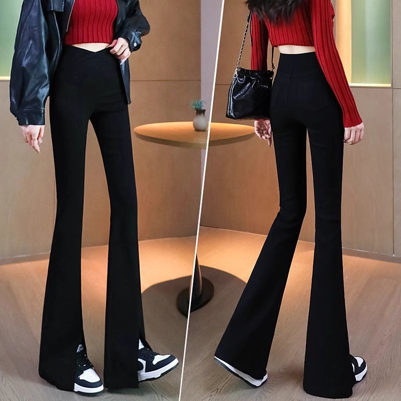 검은 색 마이크로 바지 여성의 가을과 겨울 기모 2024 새로운 폭발 높은 허리 슬리밍 탄성 슬림 작은 벨 바지