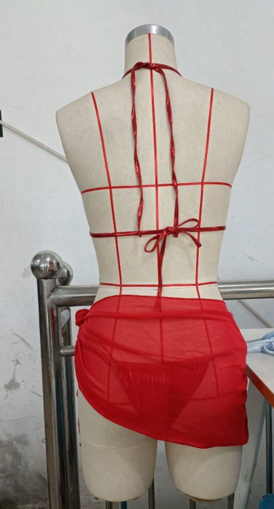 2025 유럽과 미국의 대외 무역 수영복 여성용 해변 휴가 솔리드 컬러 비키니 3피스 세트 섹시한 메쉬 스커트 홀터넥 수영복