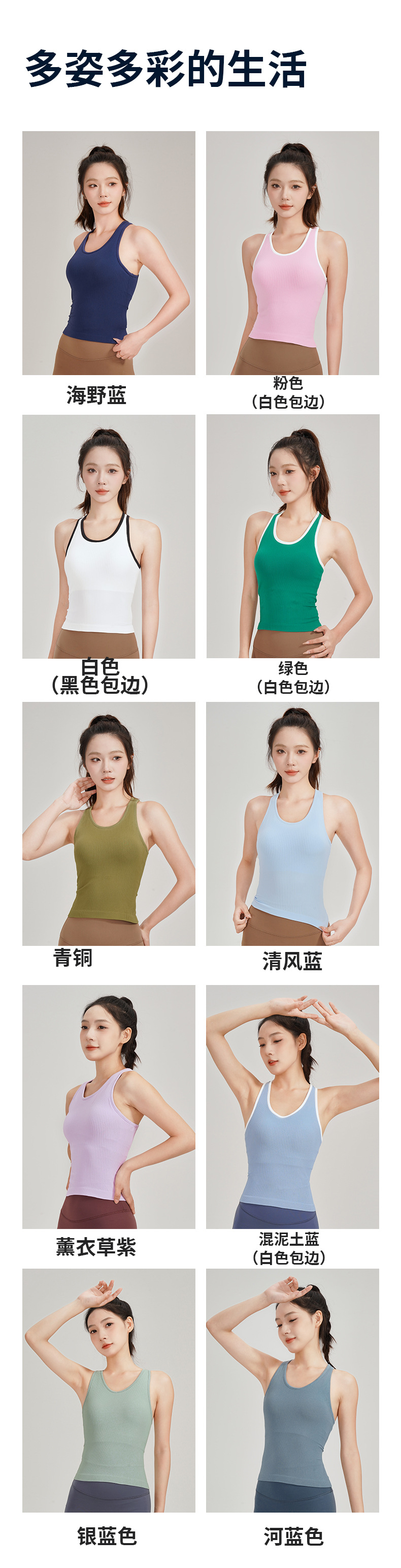 Lulu 새로운 새로운 컬러 콘트라스트 요가 조끼 더블 레이어 높은 탄성 수분 위킹 가슴 패드 분리 가능한 스포츠 속옷스토어 가기