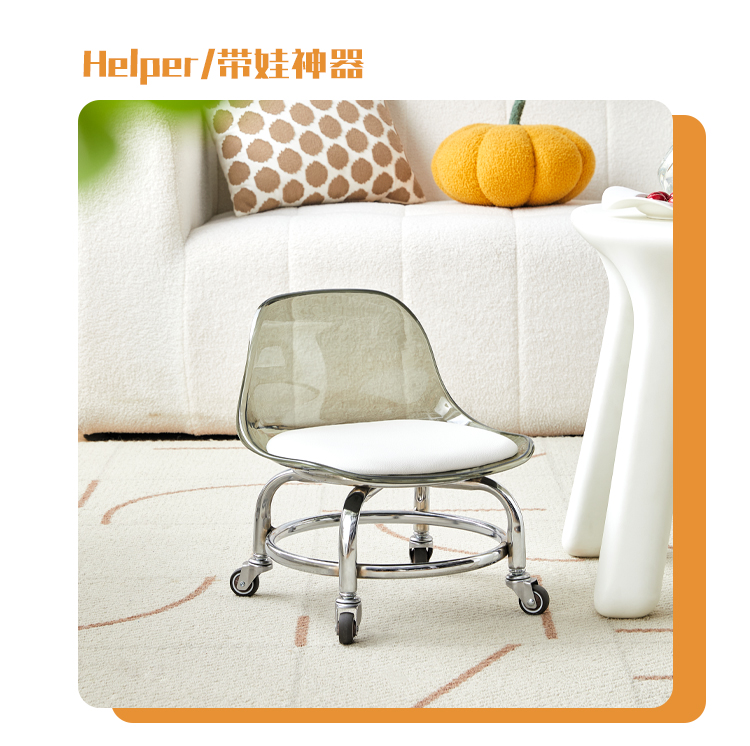 Tiantai Hualian 아크릴 작은 의자 풀리 낮은 의자 가정용 조용한 유니버설 휠 작은 의자