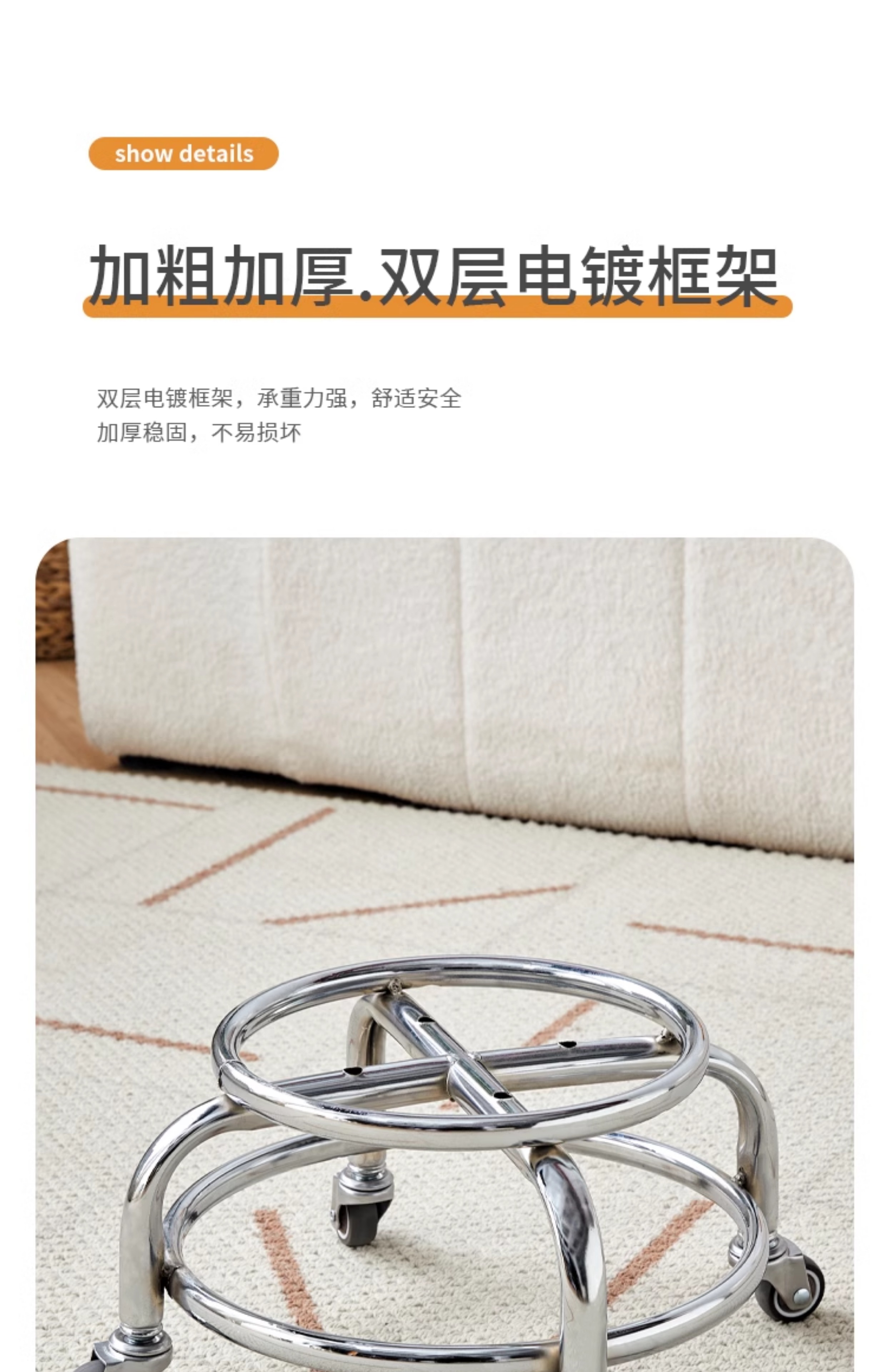 • 업그레이드된 안정성 - 화이트 [메탈 스툴 프레임] 사일런트 휠