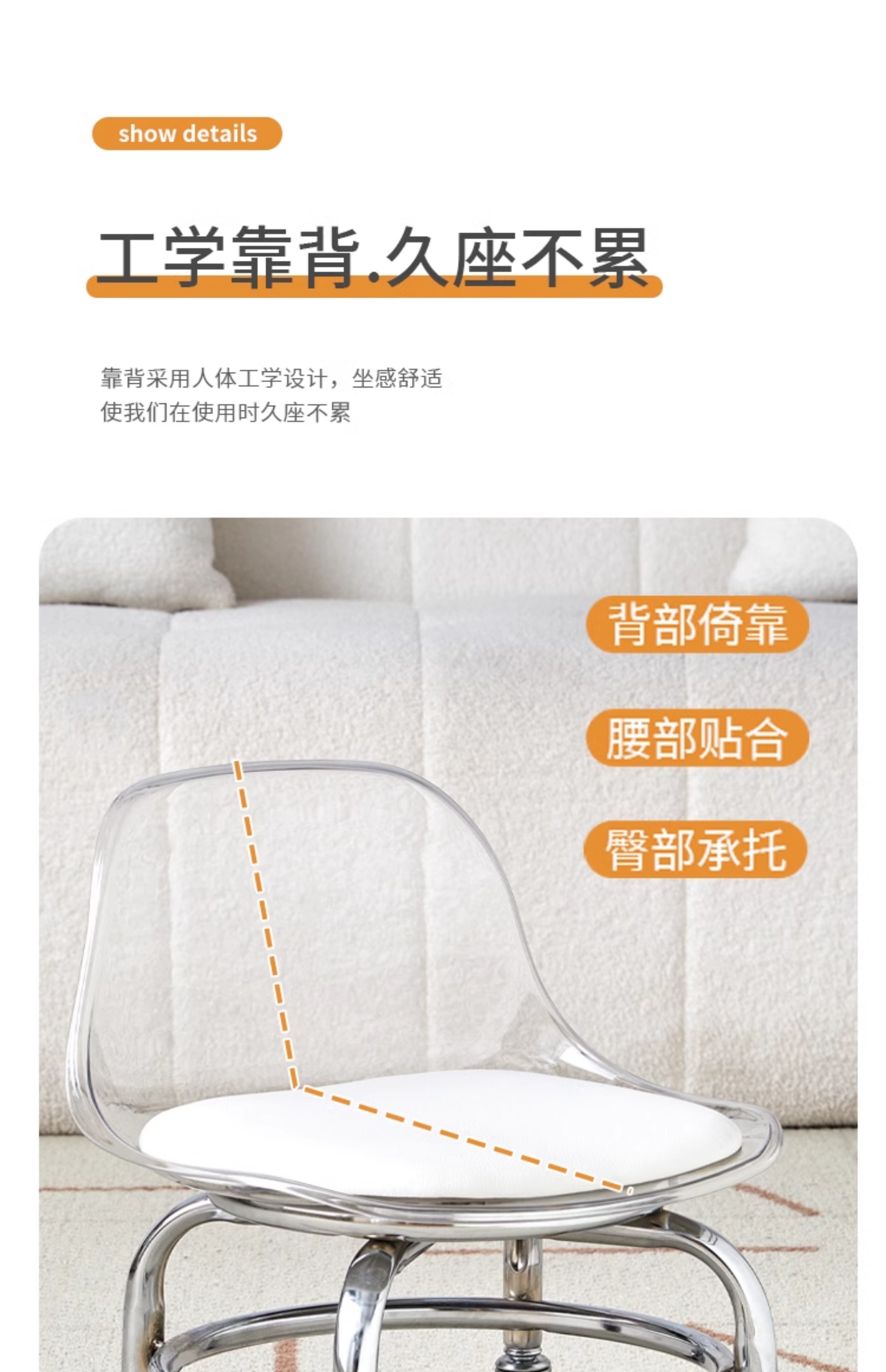 Tiantai Hualian 아크릴 작은 의자 풀리 낮은 의자 가정용 조용한 유니버설 휠 작은 의자스토어 가기