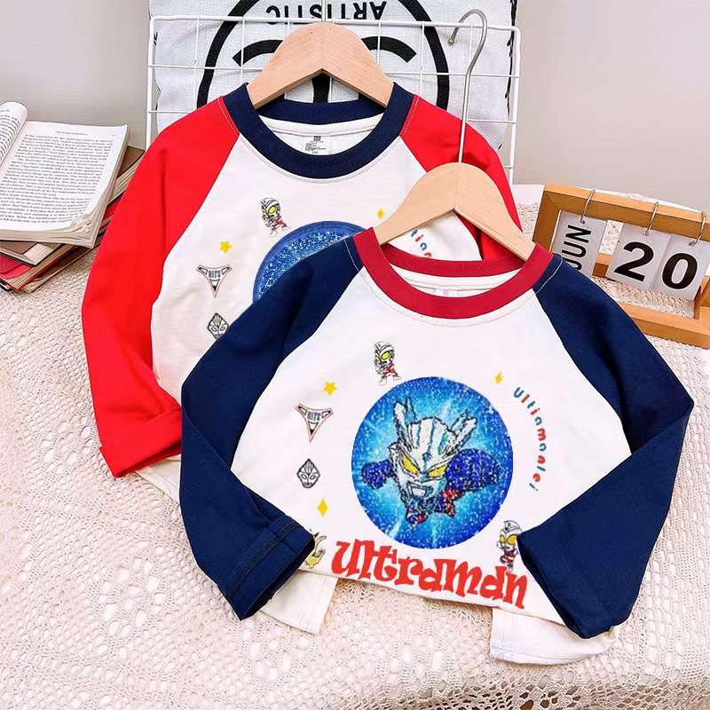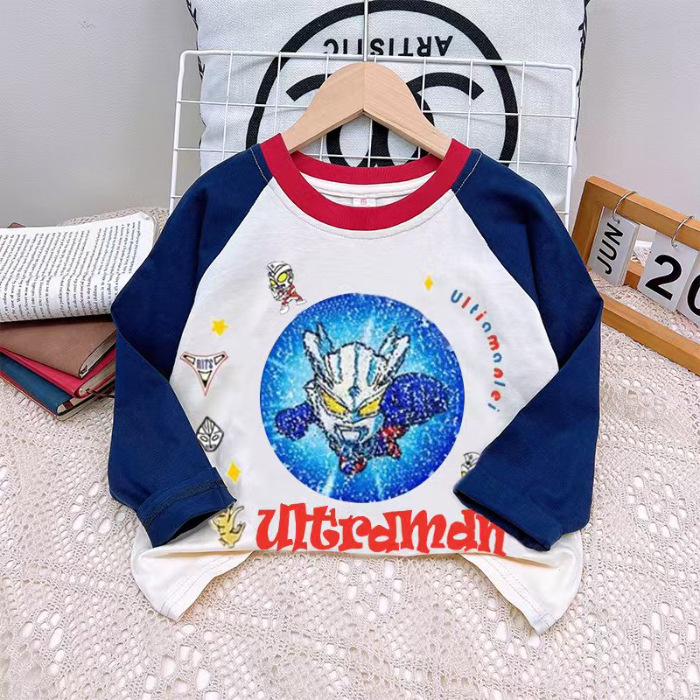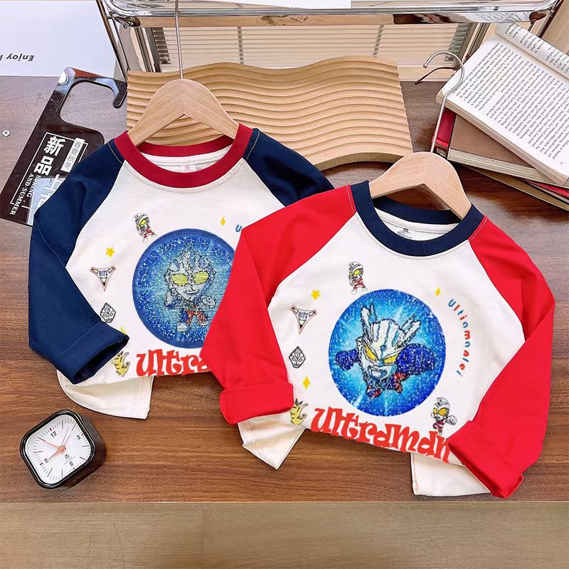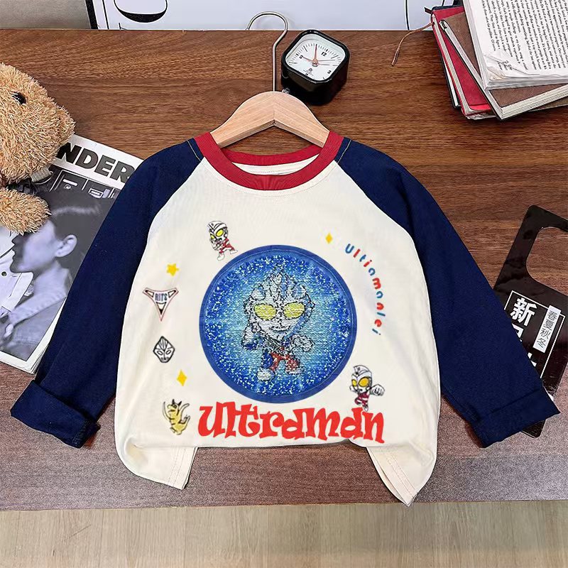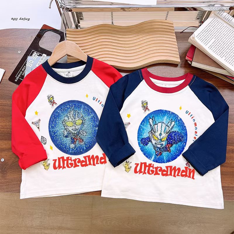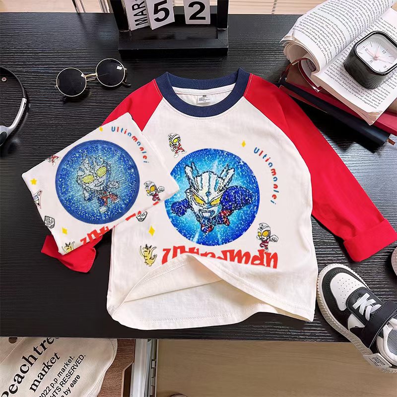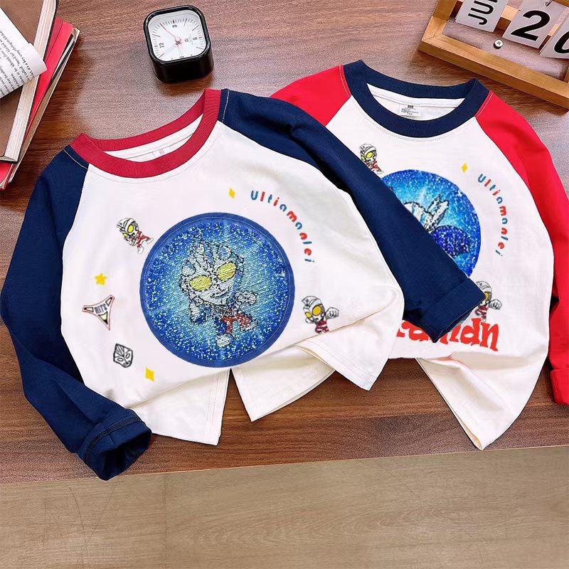 소년 Raglan 슈퍼맨 Syro Sequins 긴 소매 티셔츠 가을 중대형 어린이 플립 페이스 프라이드 스트리트 퓨어 코튼 탑 티셔츠