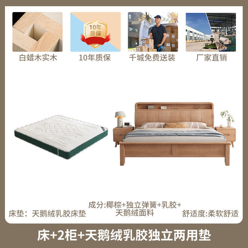 애쉬 모든 단단한 나무 침대 1.8x2 더블 침대 간단한 현대 장내 및 테온 전체 마스터 침실 퀸 침대 1.5 미터 저장 침대스토어 가기