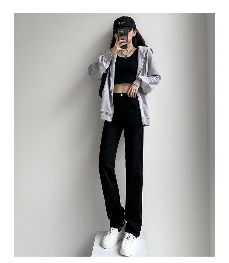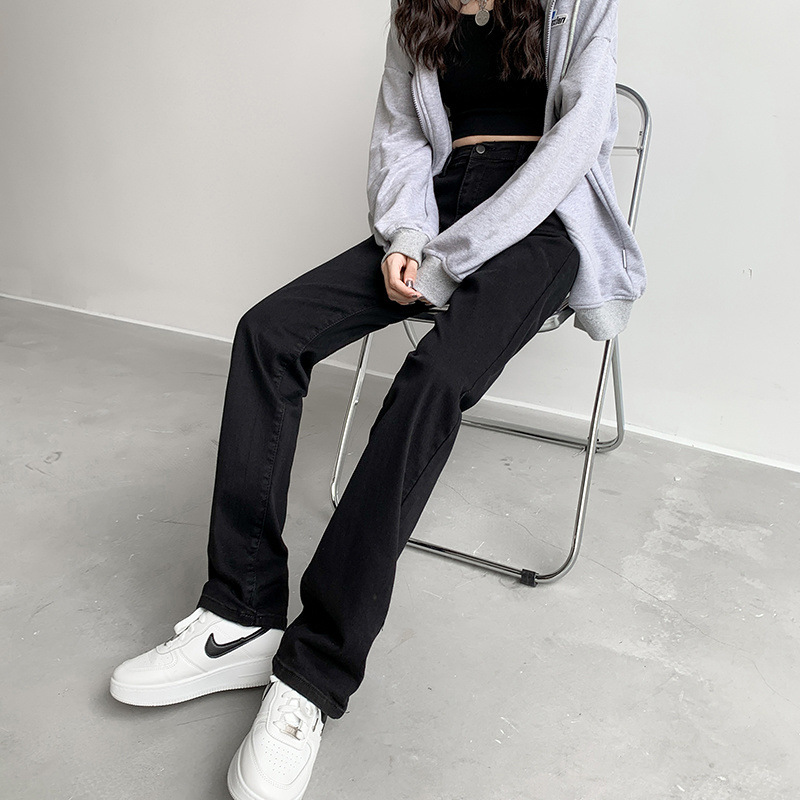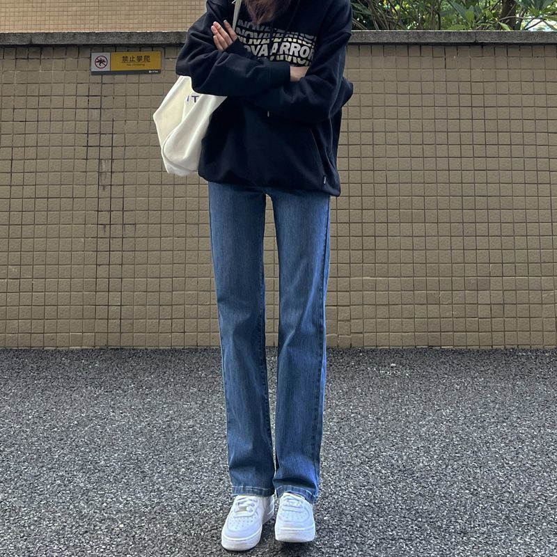 스트레이트 레그 청바지 여성용 2025 새로운 스타일 연기 튜브 팬츠 레트로 블루 하이 웨이스트 슬림 올 매치 연속 스트레치 패션스토어 가기