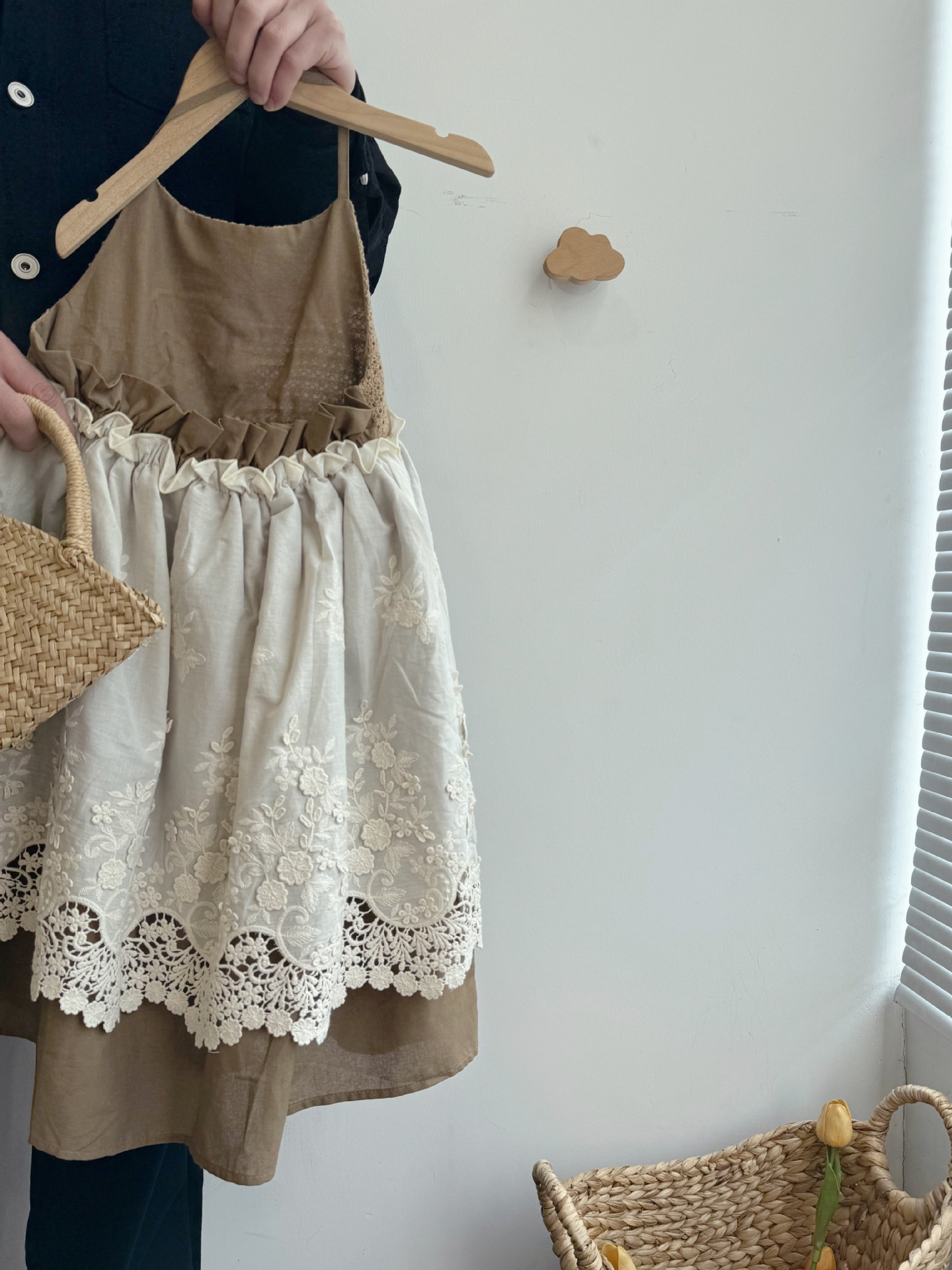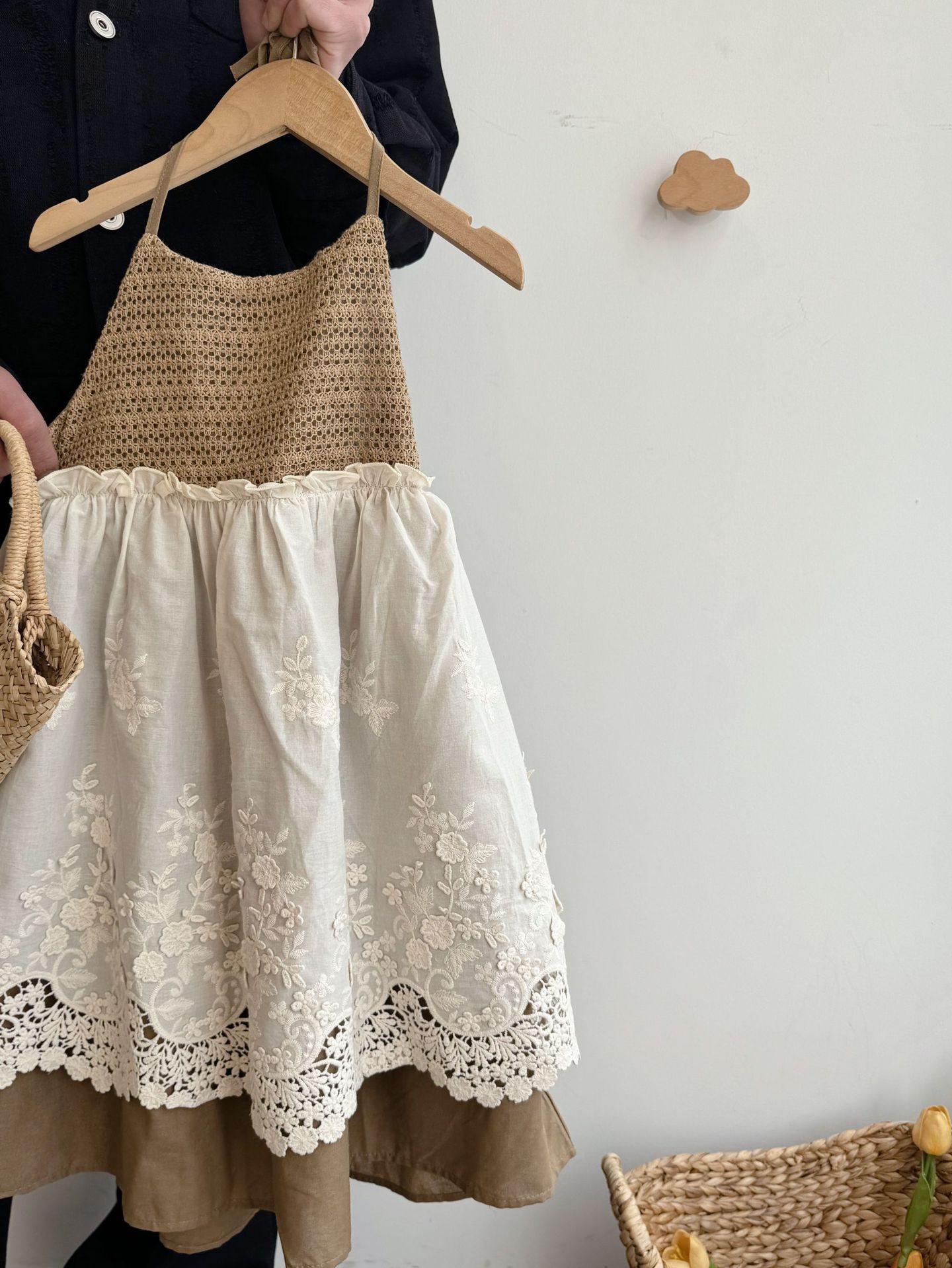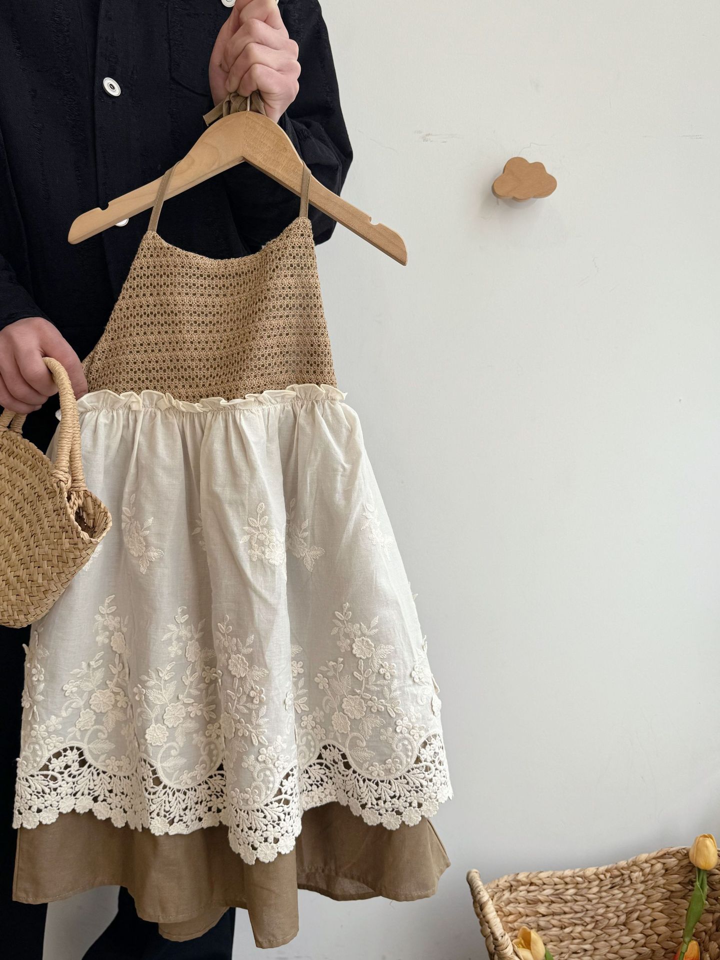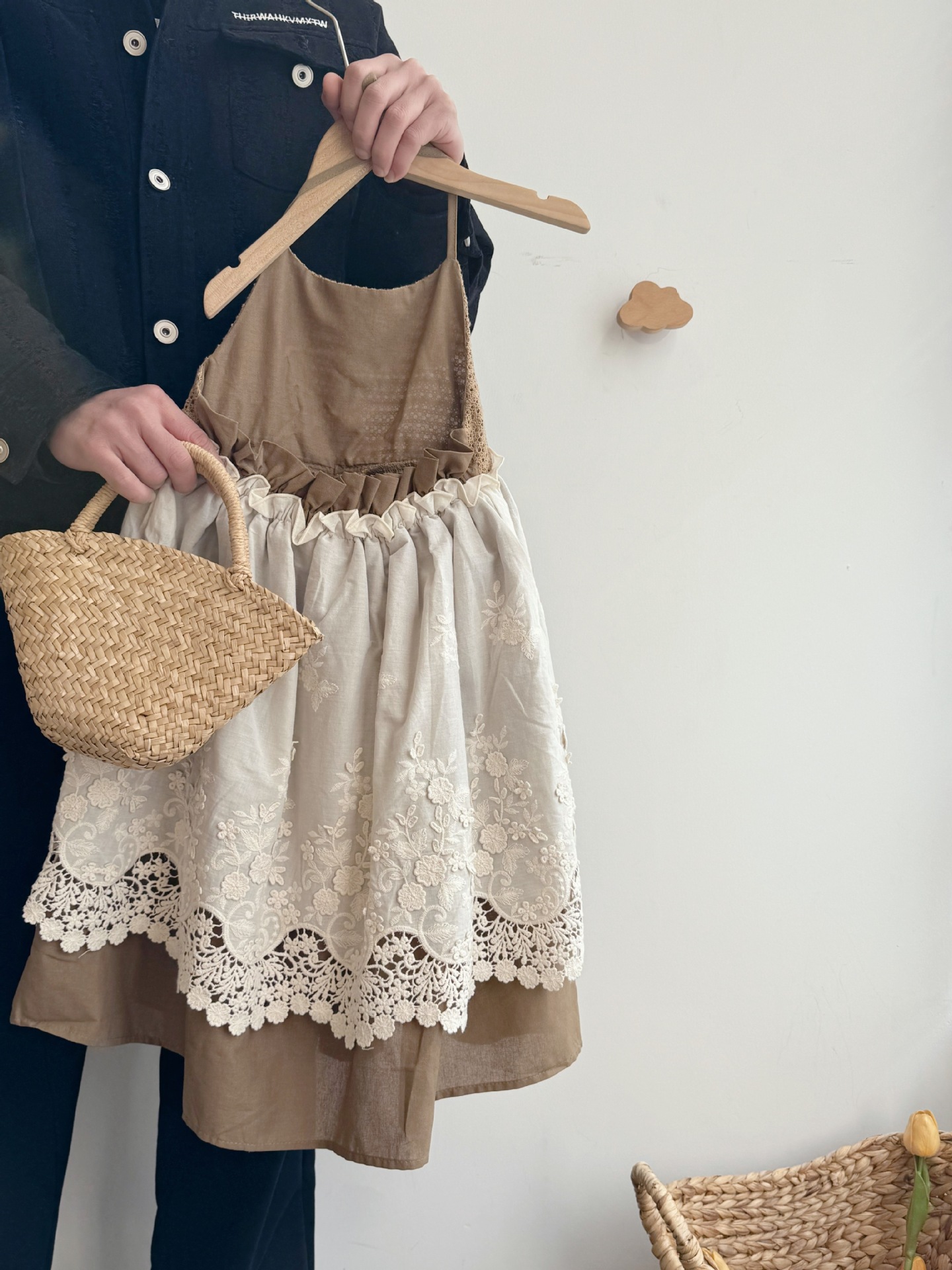Beishang 2025 새로운 봄과 여름 아기 소녀 여름 얇은 레이스 원피스 서양식 할로우 민소매 스트랩 스커트스토어 가기