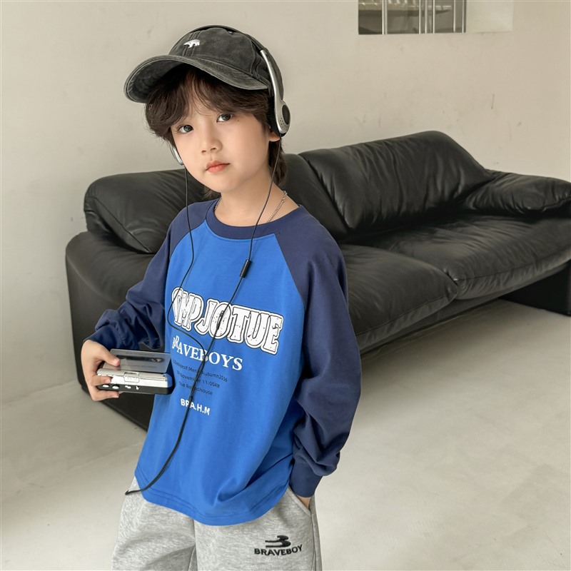Haima 소년 티셔츠 긴팔 가을 2025 새로운 어린이 바닥 셔츠 소년 탑 가을 의류 중대형 아동 의류스토어 가기