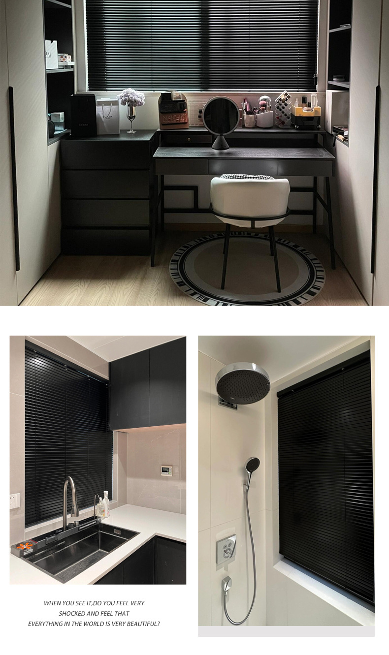 새로운 블랙 방수 풀 쉐이딩 L 자형 알루미늄 베네치아 블라인드 펀치없는 주방 욕실 공장 형 베네치아 블라인드