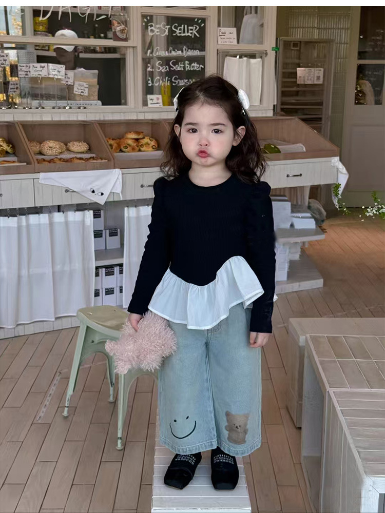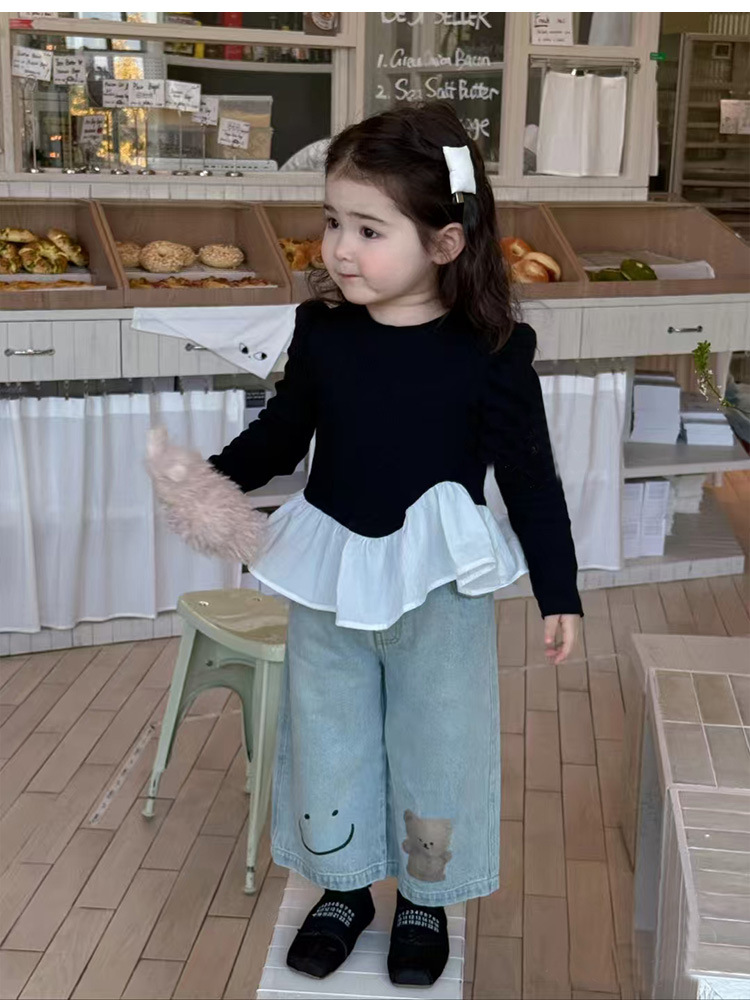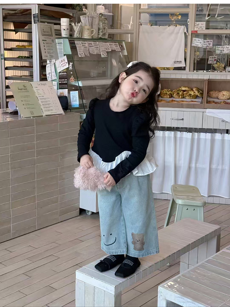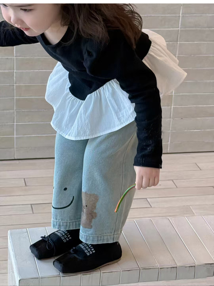 아동용 청바지 여아용 와이드 팬츠 봄 2026 아동복 한국 스타일 유아 봄옷 루즈핏 스트레이트 팬츠 외출용스토어 가기