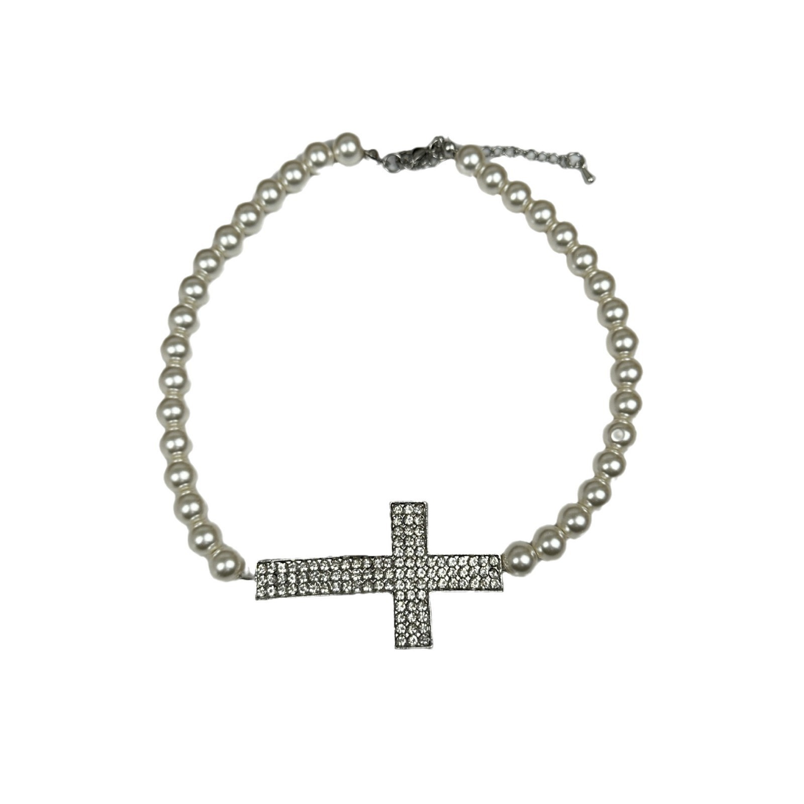 • 실버 풀 다이아몬드 크로스 진주 목걸이 X4818