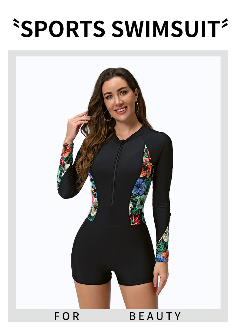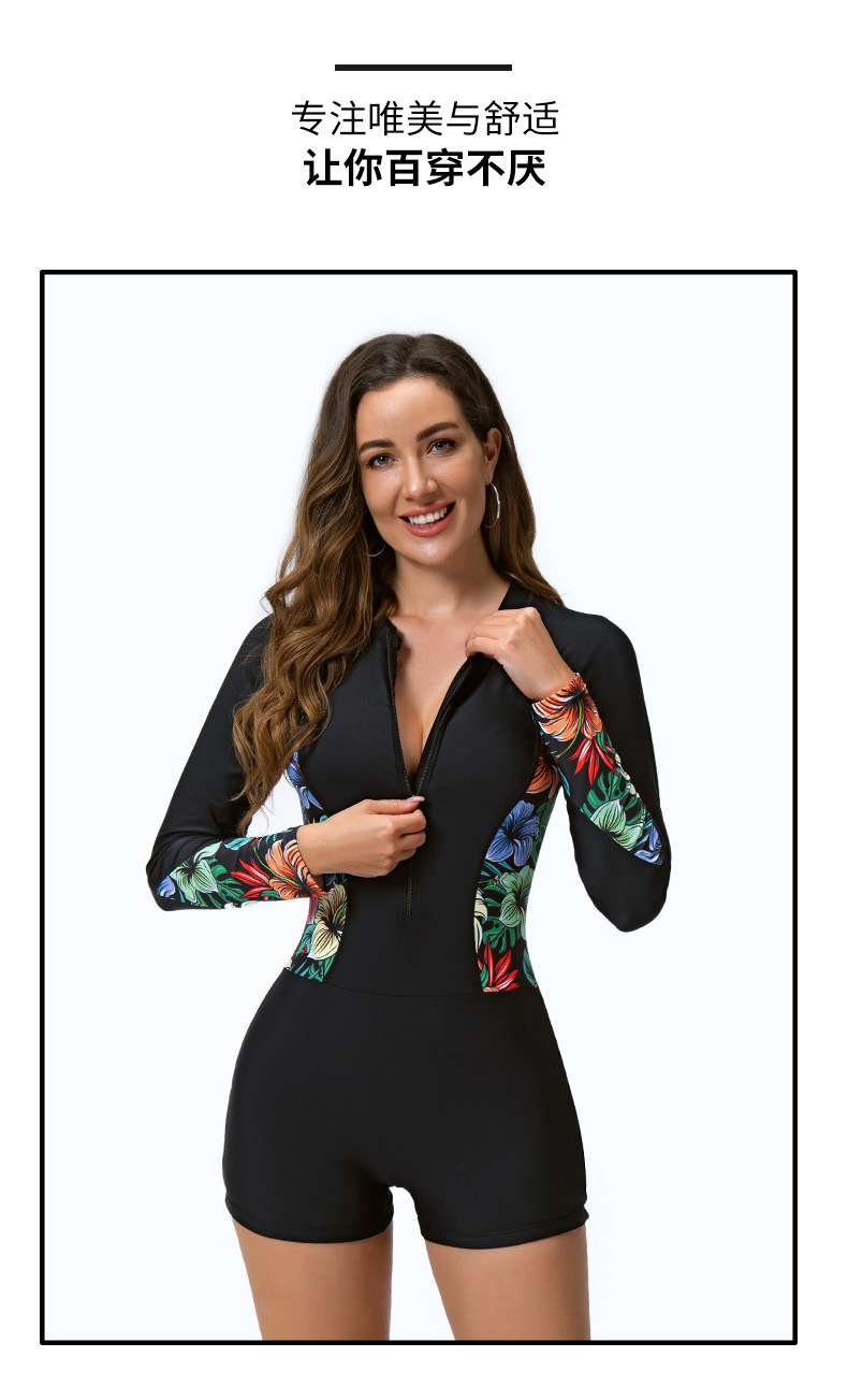 유럽과 미국의 국경 간 패션 뜨거운 대외 무역 수영복 여성 원피스 지퍼 긴 소매 인쇄 컬러 매칭 서핑 세트스토어 가기