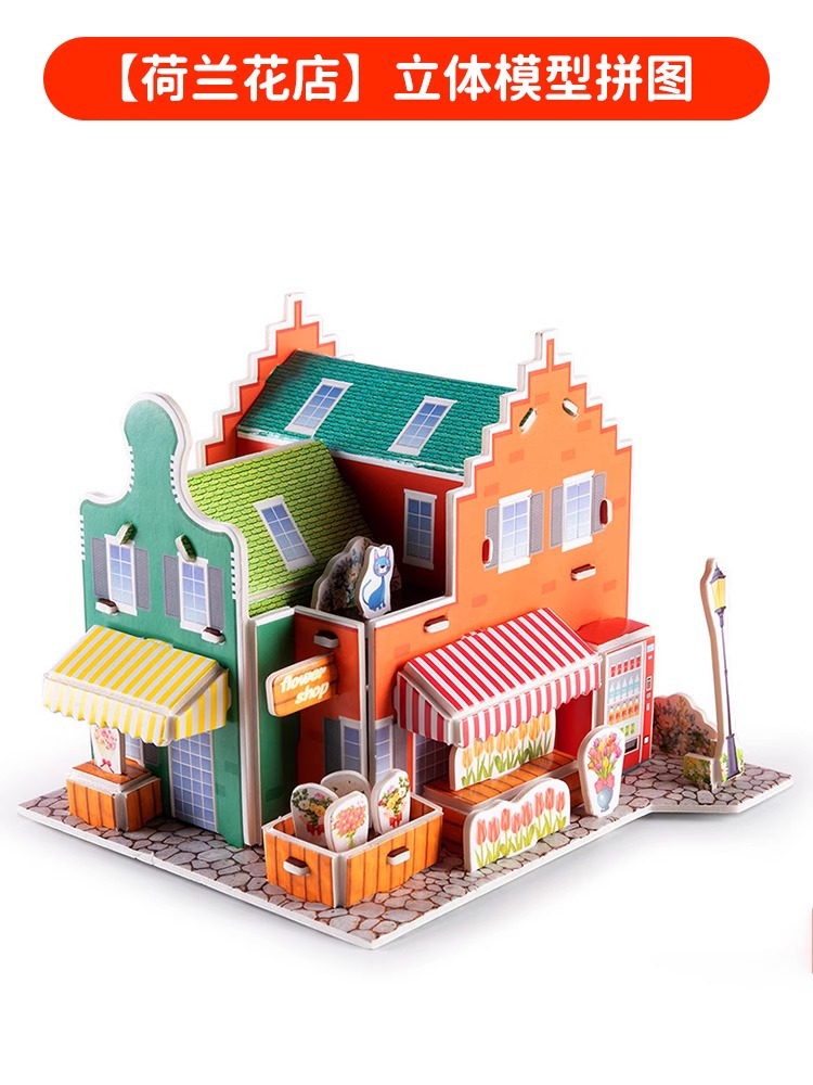 어린이 직소 3D 모델 소년과 소녀 수제 DIY 하우스 조기 교육 교육 뇌 장난감 마이크로 조립스토어 가기