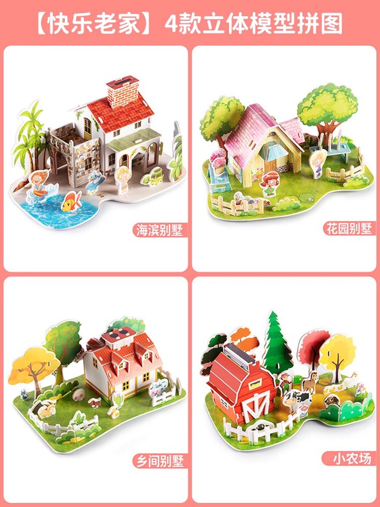어린이 직소 3D 모델 소년과 소녀 수제 DIY 하우스 조기 교육 교육 뇌 장난감 마이크로 조립