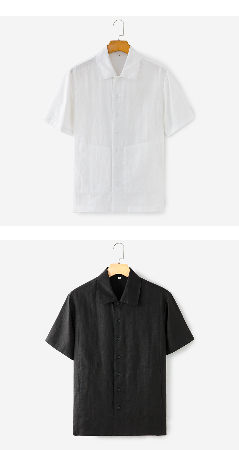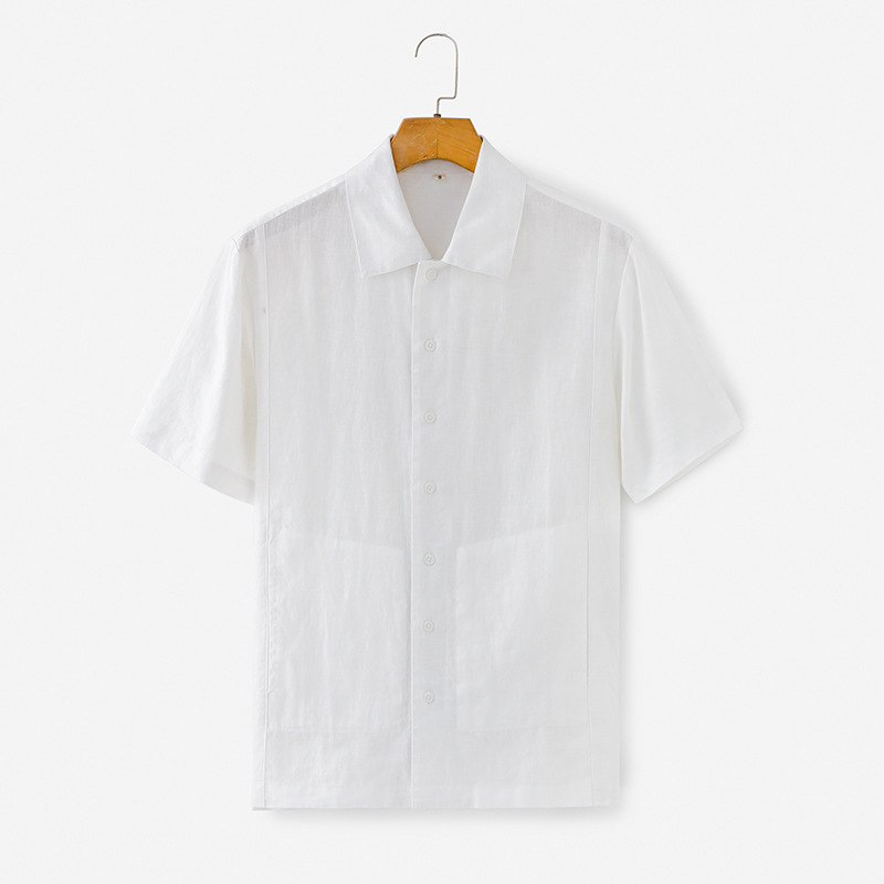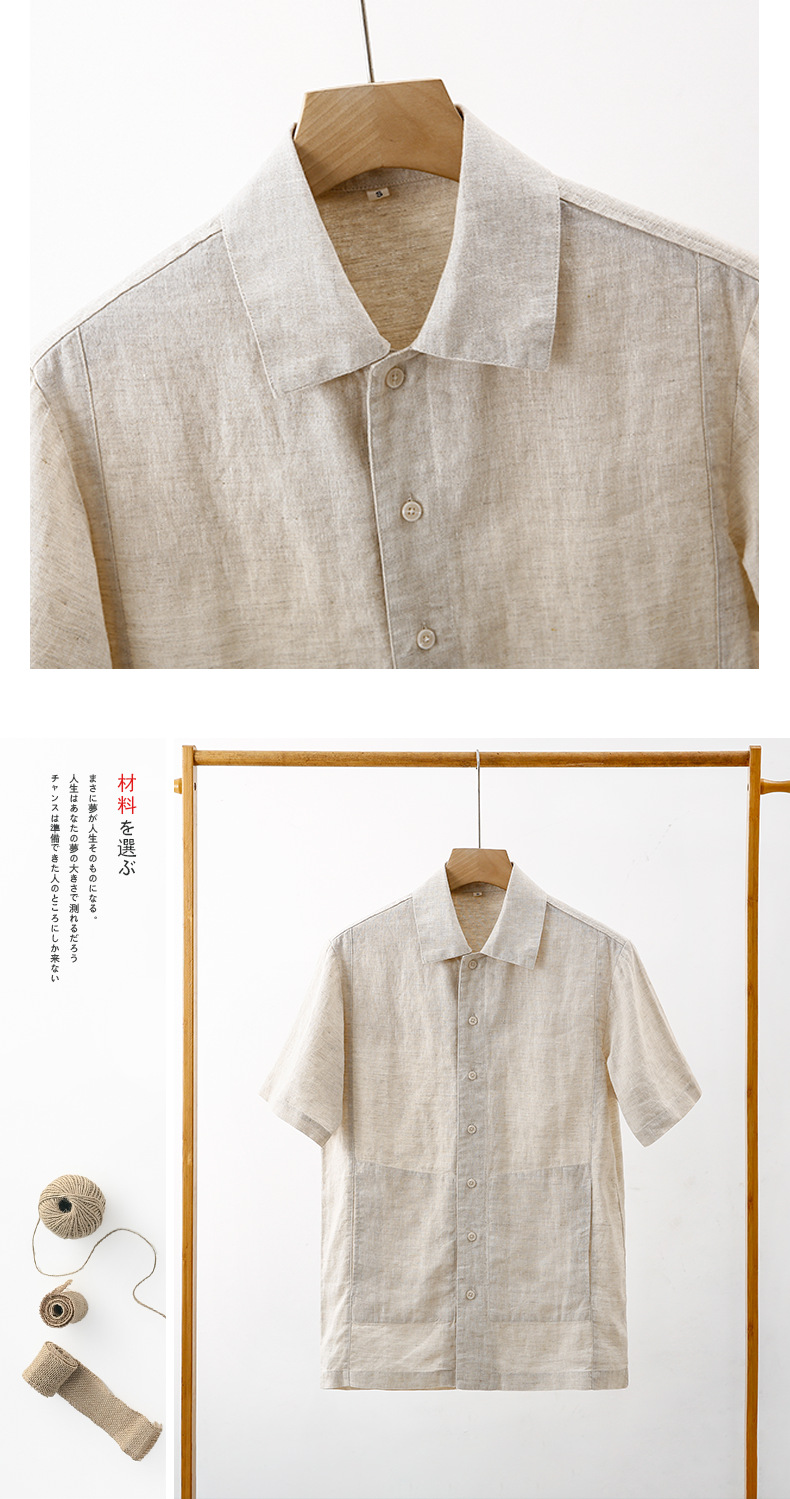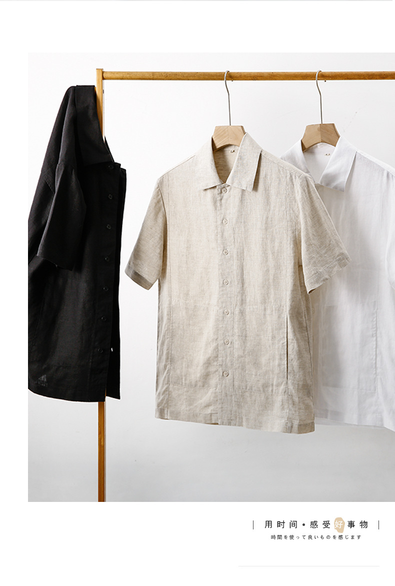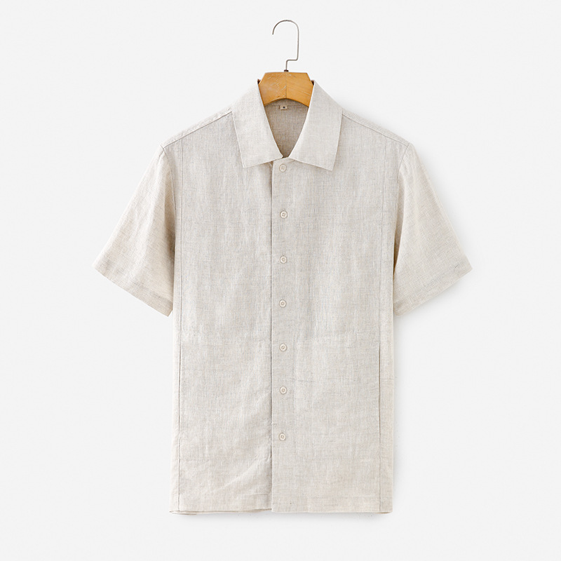 여름 신작 라펠 린넨 반팔 상큼한 남성 린넨 반팔 심플 얇은 캐주얼 셔츠 H001