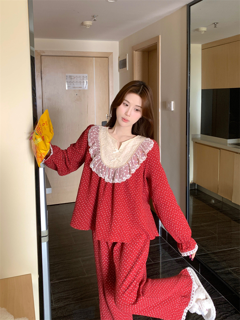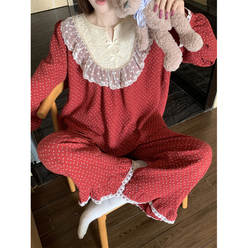 한국 in 여성 새 한국어 봄 가을 달콤한 공주 레이스 느슨한 긴 소매 홈 의류 도매스토어 가기