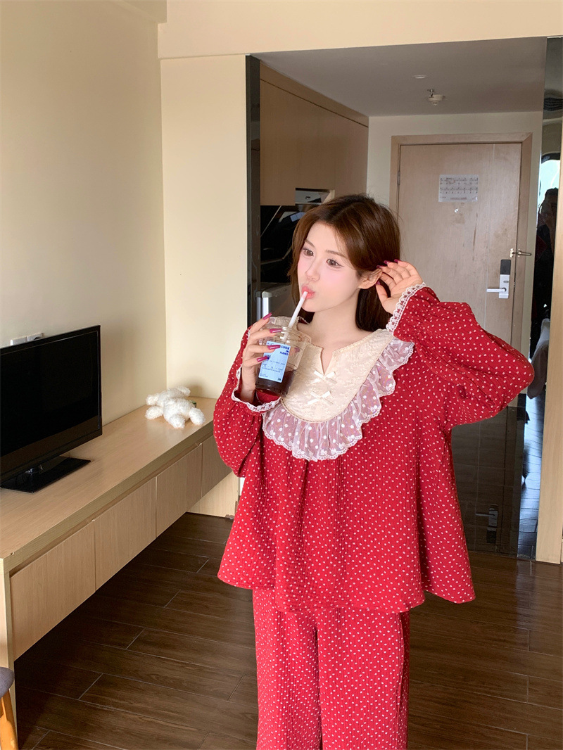 한국 in 여성 새 한국어 봄 가을 달콤한 공주 레이스 느슨한 긴 소매 홈 의류 도매